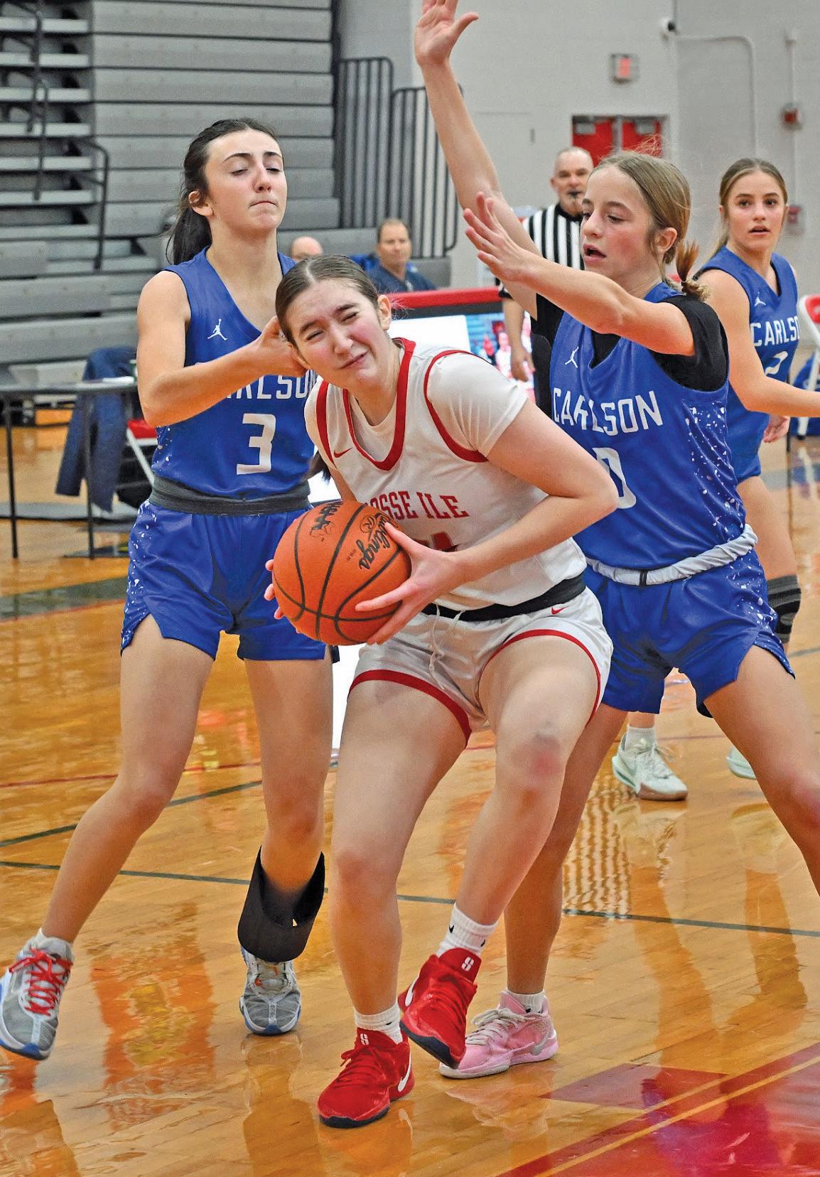 The girls basketball teams from Grosse Ile and Carlson opened the 2025 portion of their season on Jan. 6 when they met on the court at Grosse Ile High School.