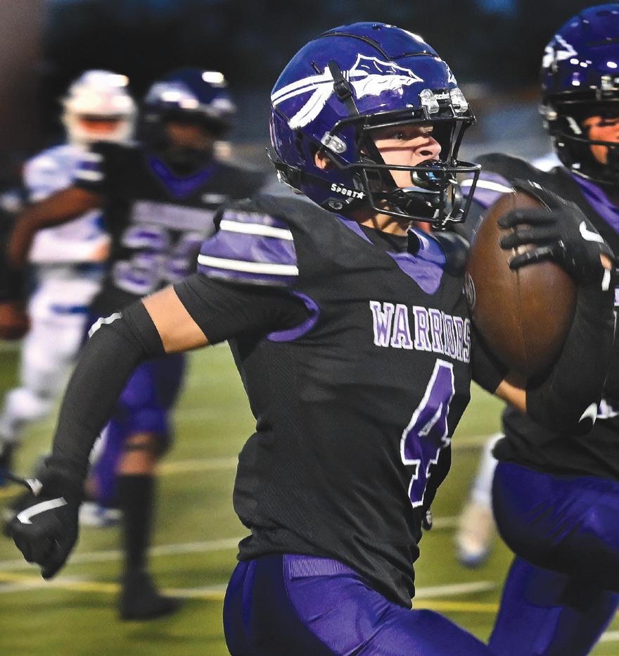 The Warrior defense stepped up in the fourth, highlighted by a big hit from senior Taj Ferguson (#10) on third down that stalled a Carlson drive. With just under five minutes to play, the defense held strong and forced a turnover on downs.