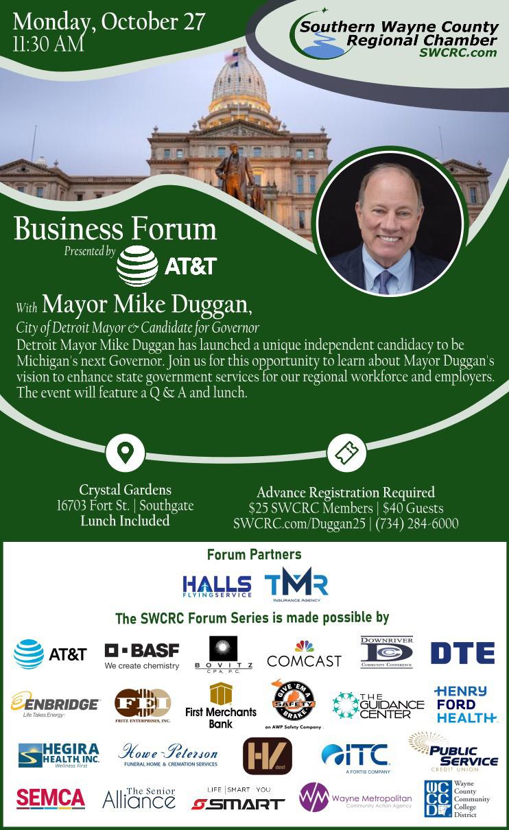 Mayor Duggan, who recently announced his independent campaign for Governor, will share insight on his campaign, his vision for Michigan’s future, and what’s ahead as we look toward next November’s election. Don’t miss this opportunity to be part of the conversation and engage directly with leaders making an impact locally and