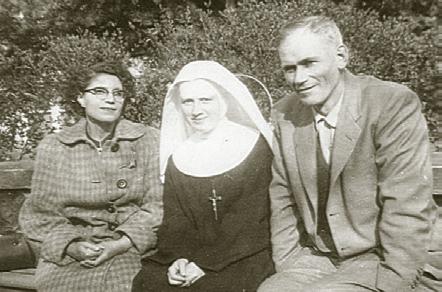 Opposite page: Sister M. Grace Schonlau and her parents, Edward and Virginia. This page: Sister M. Juanita Villarreal (second from left) with Sister Barbara Roberts and Sister Elizabeth Sohler.