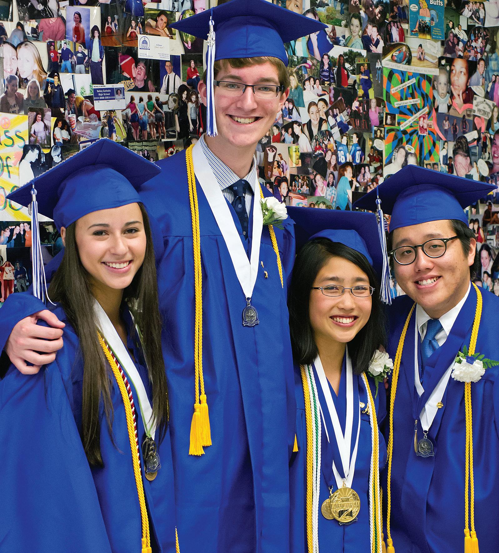 The final step in one journey and the next step in another: graduation day for the Valley Catholic Class of 2013. Left to right: Kimberly Howell, Philip Seger, Sophia Chau and Kevin Cho.