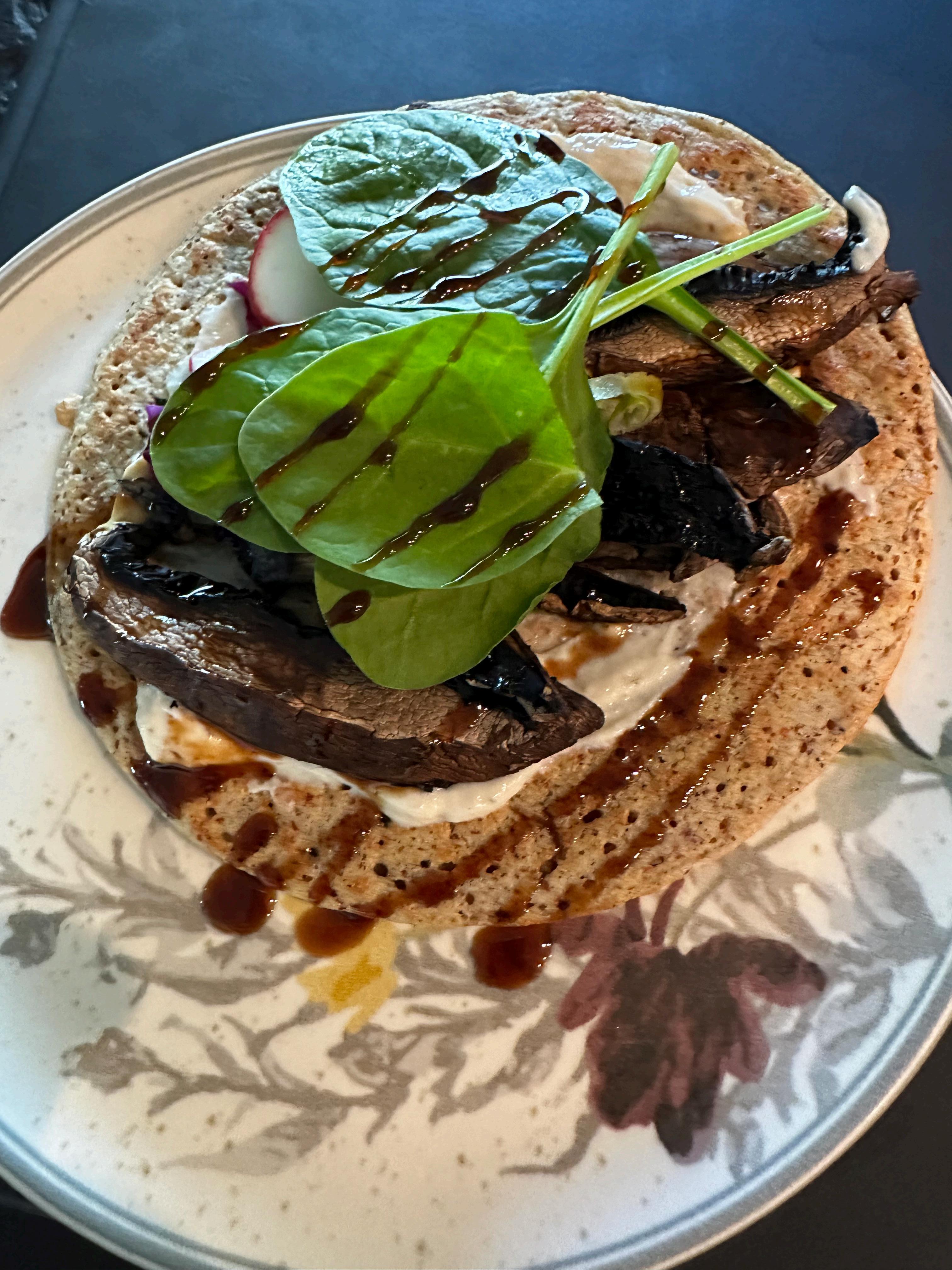 Step Four: Cook the reserved sliced mushrooms in a splash of soy sauce, water and balsamic vinegar, until browned. Serve the oatmeal with the mushrooms on top.