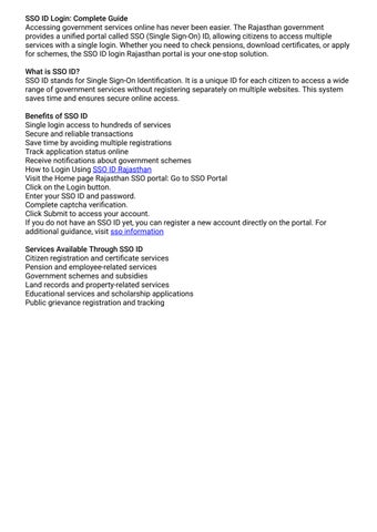 SSO ID Info is the definitive guide to Rajasthan's digital governance ecosystem. We provide accurate, step-by-step tutorials, troubleshooting help, and the latest updates on the Rajasthan SSO ID portal, BSO portal, Jan Aadhaar, Bhamashah, and other essential online citizen services. Our mission is to empower every resident of Rajasthan to access and navigate government services with confidence and ease.