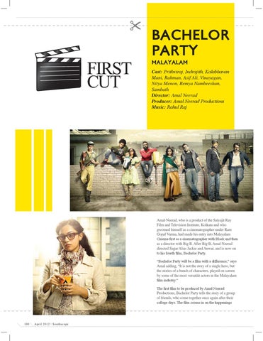 Amal Neerad, who is a product of the Satyajit Ray Film and Television Institute, Kolkata and who groomed himself as a cinematographer under Ram Gopal Varma, had made his entry into Malayalam &LQHPD ÂżUVW DV D FLQHPDWRJUDSKHU ZLWK %ODFN DQG WKHQ as a director with Big B. After Big B, Amal Neerad directed Sagar Alias Jackie and Anwar, and is now on WR KLV IRXUWK ÂżOP %DFKHORU 3DUW\ Âł%DFKHORU 3DUW\ ZLOO EH D ÂżOP ZLWK D GLIIHUHQFH ´ VD\V Amal adding, “It is not the story of a single hero, but the stories of a bunch of characters, played on screen by some of the most versatile actors in the Malayalam ÂżOP LQGXVWU\ ´ 7KH ÂżUVW ÂżOP WR EH SURGXFHG E\ $PDO 1HHUDG Productions, Bachelor Party tells the story of a group of friends, who come together once again after their FROOHJH GD\V 7KH ÂżOP ]RRPV LQ RQ WKH KDSSHQLQJV