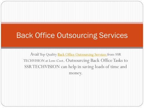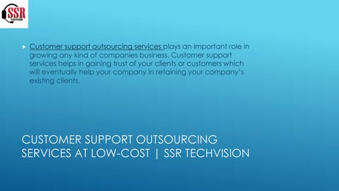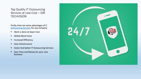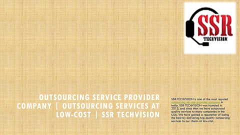 SSR TECHVISION is one of the most reputed Outsourcing Service Provider Company in India with its branch in the United States. We are in outsourcing industries since 2015. Our Outsourcing Services includes call center services, customer support services, back office services, healthcare outsourcing services and IT outsourcing Services.