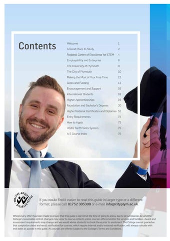 If you would find it easier to read this guide in larger type or a different format, please call 01752 305300 or e-mail info@cityplym.ac.uk. Whilst every effort has been made to ensure that this guide is correct at the time of going to press, due to circumstances beyond the College’s reasonable control, changes may occur to course content, prices, courses offered and/or the services and facilities. Award and assessment requirements may change and we would advise students to check these prior to enrolment. The College cannot guarantee that completion dates and result notification for courses, which require internal and/or external verification, will always coincide with end dates as quoted in this guide. All courses are offered subject to the College’s Terms and Conditions.