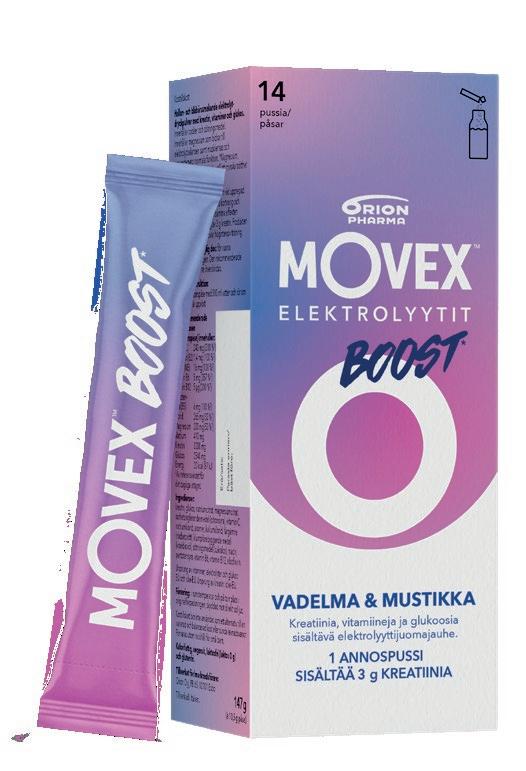Movex Boost on kätevä kantaa mukana ja sekoittaa 500 millilitraan raikasta vettä. Vadelman ja musti kan makuinen tuote on makeutettu glukoosilla ja sukraloosilla. Se on ve gaaninen, vähäkalorinen, laktoositon ja gluteeniton.