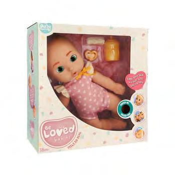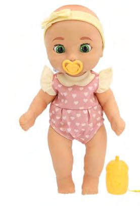 Vauvanukke joka sulkee silmänsä tuttia suussa pyörittämällä. Kylvetettävä, juotettava ja itkee oikeita kyyneleitä