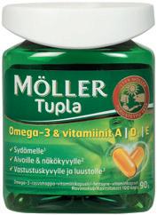 Kalaöljyvalmiste, joka sisältää elimistölle tärkeitä omega-3-rasvahappoja sekä A-, D- ja E-vitamiinia.