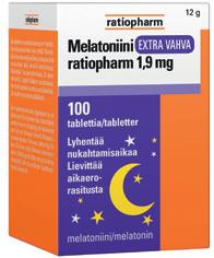 Vahva melatoniinivalmiste, jossa vaihtoehtoina pitkävaikutteinen (90 tabl.), nieltävä (100 tabl.) tai mintunmakuinen suussa hajoava (100 tabl.) tabletti.