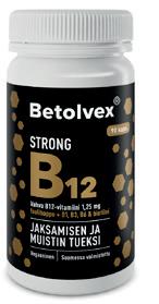 B12-vitamiinivalmisteet muistin ja jaksamisen tueksi. Strong sisältää myös muita B-ryhmän vitamiineja.