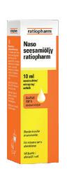 Naso-ratiopharm on nenän tukkoisuuden lyhytaikaiseen hoitoon tarkoitettu säilytysaineeton nenäsumute. Vaikuttava aine on ksylometatsoliini. Vahvempi (1 mg/ml) vahvuus on tarkoitettu aikuisille ja yli 10-vuotiaille ja miedompi (0,5 mg/ml) 2–10-vuotiaille lapsille. Alle 10-vuotiaille yhtäjaksoisesti enintään 5 vuorokauden ja yli 10-vuotiaille enintään 7 vuorokauden ajan. Käyttö raskauden ja imetyksen aikana vain lääkärin ohjeen mukaan. Tutustu huolella pakkausselosteeseen. Itsehoitolääke. Markkinoija: Teva Finland Oy. Teksti perustuu 8.2.2021 päivättyyn valmisteyhteenvetoon.
