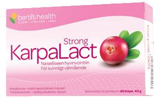 Karpalouute ja maitohappobakteerit naiselliseen hyvinvointiin. Kapselit sopivat sekä pitkäaikaiseen käyttöön että lyhytaikaiseen käyttöön kuurina.