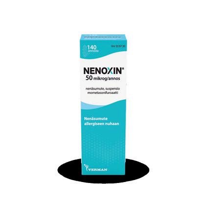 Dymista 125 mikrogrammaa + 50 mikrogrammaa / annos nenäsumute, suspensio on tarkoitettu aikuisille keskivaikean tai vaikean kausiluonteisen allergisen nuhan oireiden lievittämiseen, kun hoito nenän kautta otettavalla antihistamiinilla tai glukokortikoidilla ei riitä. Vaikuttavat aineet: atselastiinihydrokloridi + flutikasonipropionaatti. Yksi suihke kumpaankin sieraimeen aamuin illoin. Otettava yhteyttä lääkäriin, jollei olo parane kahden viikon jälkeen tai se huononee. Varmista nenäsumutteen oikea käyttötapa pakkausselosteesta. Dymista-valmistetta saa käyttää raskauden ja imetyksen aikana vain lääkärin määräyksellä. Tutustu huolella pakkausselosteeseen. Saatavana vain apteekista. Markkinoija Viatris Oy. (22.6.2022)