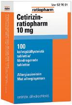 Cetirizin-ratiopharm (setiritsiini) on tehokas itsehoitolääke kausiluontoisen ja ympärivuotisen allergisen nuhan sekä allergisten silmä- ja iho-oireiden hoitoon. Alle 6-vuotiaille vain lääkärin määräyksestä. Neuvottele lääkärin kanssa, jos sairastat munuaissairautta, olet raskaana tai imetät. Tutustu huolella pakkausselosteeseen. Markkinoija: Teva Finland Oy. MULTI_FI_00928_1_23