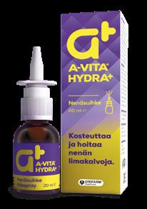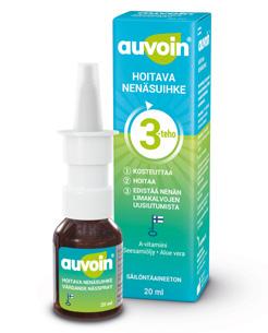 Hyaluronihappoa, A- ja E-vitamiinia, dekspantenolia ja biotiinia sisältävä öljypohjainen nenän kostutussuihke.