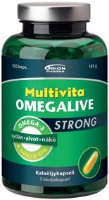 Omega-3-rasvahappoja sisältävä helposti nieltävä vahva kalaöljykapseli.