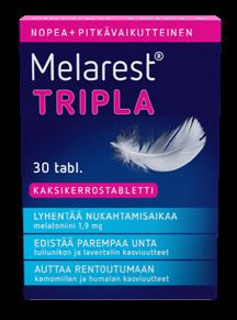 Vahva melatoniinitabletti, jossa vaihtoehtoina pitkävaikutteinen (90 tabl.), nieltävä (100 tabl.) tai neutraalinmakuinen suussa hajoava (100 tabl.).