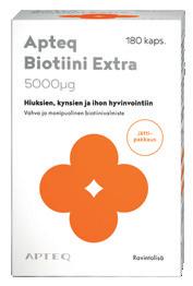 Suomessa kehitetty hiusten, kynsien ja ihon hyvinvointiin tarkoitettu vahva ja monipuolinen biotiinivalmiste.
