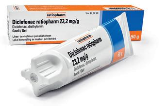 Diclofenac ratiopharm 23,2 mg/g geeli. Kivun paikalliseen, oireenmukaiseen hoitoon akuuteissa nyrjähdyksissä, venähdyksissä tai tylpissä ruhjevammoissa Valmiste on tarkoitettu lyhytaikaiseen käyttöön Vaikuttava aine diklofenaakki Aikuisille ja vähintään 14-vuotiaille nuorille Neuvottele lääkärin kanssa, jos olet raskaana tai imetät Älä käytä, jos olet allerginen jollekin valmisteen ainesosille Pakkauskoot 50, 100 ja 150 g tuubi Itsehoitolääke Tutustu huolella pakkausselosteeseen Perustuu 10.6.2020 päivättyyn valmisteyhteenvetoon Lisätiedot: www.laakeohje.fi, infofinland@tevapharm.com Markkinoija Teva Finland Oy MULTI_FI_00931_1_23