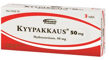 Kyypakkaus 50 mg tabletti. Ensiavuksi käärmeenpuremaan sekä mehiläisen tai ampiaisen piston aiheuttamiin reaktioihin. Noudata käyttöohjetta ja ota aina yhteys lääkäriin kyynpureman jälkeen. Vaikuttava aine: hydrokortisoni. Pakkauskoko: 3 tablettia. Itsehoitolääke. Tutustu huolellisesti pakkausselosteeseen.