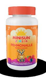 Kampanjassa kaikki yli 7€ maksavat Minisun D-vitamiinit. Kampanja voimassa syyskuun 2023 ajan tai niin kauan kuin Minisun Junior C-vitamiini 80 tabl. riittää. Apteekista.