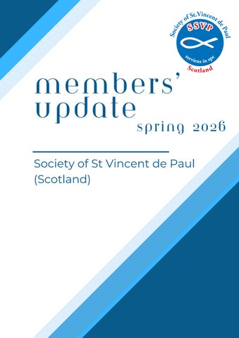 Welcome to this Members’ Update for Spring 2026 I hope it finds you all in good health. You will be aware that our newsletters, in the form of “The Ozanam News’ have not been issued recently, largely due to low staffing levels in the National Office However, with our team in the National Office now in place, we are looking to re-establish a regular members’ newsletter as a priority As the Society moves forward, we are reviewing many of our current practices, including our newsletter and communications, with a view to ensuring they meet the Society’s needs now and in the future. We invite you to take part in helping to shape our future by joining working groups for different areas of focus, a few of which are outlined in this newsletter. While this work begins, we are issuing this interim Members’ Update to ensure you are aware of key activities which have taken place since the Annual Meeting held in late August of 2025. We hope this will inspire, energise and give you hope as we continue to serve those who need us.