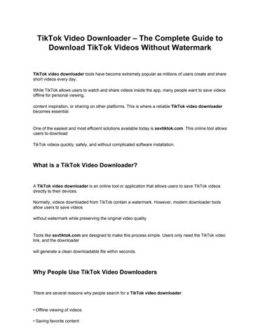 TikTok Video Download without watermark is one of the most searched topics in 2026. This complete professional guide explains how to download TikTok videos in HD quality, remove watermark safely, extract MP3 audio, and use secure online tools like SSVTikTok.com. Learn the technology, privacy considerations, and step-by-step method for downloading TikTok videos easily.