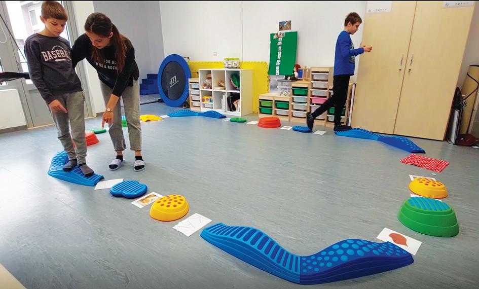 nu za cilj je definirano čitanje jednosložne riječi. Kako bi zadovoljila interese učenika, između nekoliko elemenata poligona postavila sam kartice koje sadrže svaka po jednu jednosložnu riječ ispred koje bi se učenik zaustavio, samostalno ili uz podršku pročitao napisano i nastavio kretanje po poligonu. Na ovaj način učenje se provodi kroz igru.