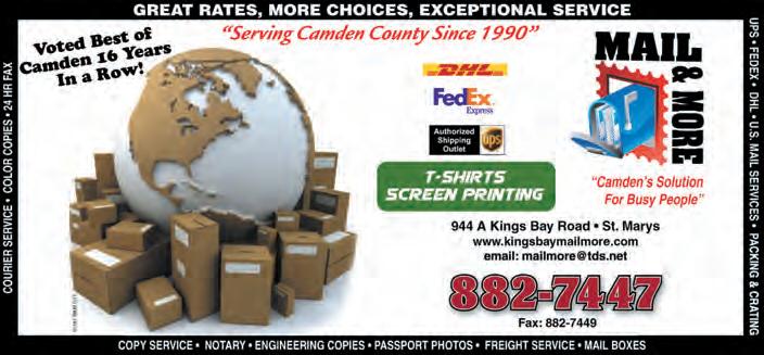 301 Herb Bauer Drive, St. Marys, GA www.funatsmac.com Birthday Parties • Swim Lessons Private Park Rentals • Season Passes ST. MARYS AQUATIC CENTER The Coolest Fun Around! The Coolest Fun Around! 912.673.8118 46 www.StMarysMagazine.com