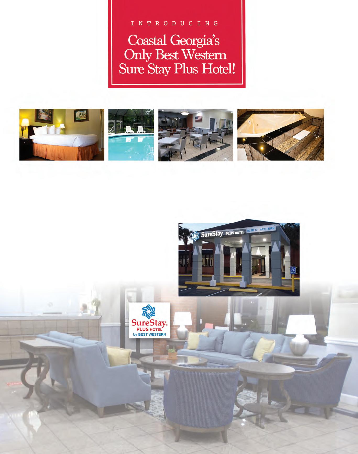 Relax and unwind while visiting the sites of Historic St. Marys and surrounding attractions. Plenty of delicious restaurants nearby and St. Marys’ iconic waterfront just a few minutes away. • 78 guestrooms including 40 suites • Fitness Center • Complimentary Business Center • More than 3500 Square Feet of Meeting Space • Free Continental Breakfast 800.768.6250 912.882.6250 I-95 GA ExIt 3 EAst • 2710 OsbOrnE rOAd • st. MArys, GA • surEstAyplusbwsAIntMArys cOM spEcIAl rAtEs ArE OffErEd tO Our ExtEndEd-stAy GuEsts, As wEll As fOr GrOups thAt bOOk Our lArGE cOnfErEncE ArEA. St. Marys • Cumberland Island • Kingsland Attractions include: Okefenokee National Wildlife Refuge, Cumberland Island, Crooked River State Park, Jekyll Island, Amelia Island in northeast Florida and Kings Bay Naval Submarine Base.