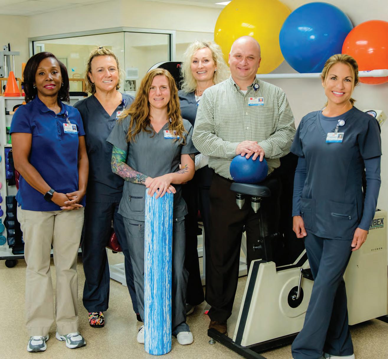 Meet the Smiles Behind the Masks. At our Outpatient Rehabilitation Care Centers, we do more than administer therapy. We provide expert care and personalized attention with a smile to help make your recovery as swift and pleasant as possible. Because we take your health seriously, we continue to wear masks during all therapy sessions. Our licensed therapists offer a full range of services: We accept all major commercial insurance plans, Medicare, Medicare HMOs and workers’ compensation. Camden Campus 2000 Dan Proctor Drive • St. Marys, GA 31558 912-576-6450 • sghs.org/rehab + Aquatic Therapy + Biodex Unweighing System + Ergonomics Program + Lymphedema Program + Occupational Therapy + Physical Therapy + Speech Therapy + Women’s Health Program (l to r) Michelle Fort , OTR/L • Brenda Keefe , P.T. • Emily Viger , PTA • Holly Gismonde , P.T. Jeff Zawislak , MPT • Renee Williamson , M.S., CCC-SLP