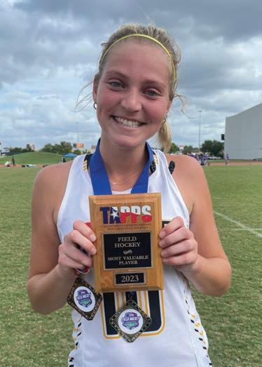 On the varsity field hockey team, Abby admits she was out of her comfort zone. Yet, she learned the “value of communication, camaraderie, and leadership” and going on to win the 2023 TAPPS State Championship was, (pause) and I quote: “the cherry on top”.