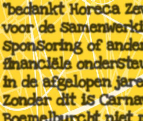 Dit is bijna de laatste pagina van de Pretgazet. Carnaval 2021 slaan wij over maar met de uitgave van deze Pretgazet gaan we ervan uit dat iedereen met des te meer zin gaat uitzien naar Carnaval 2022! Deze uitgave is met veel enthousiasme tot stand gebracht. Een welgemeend dank voor de pr-commissie van Boemelburcht en alle adverteerders en sponsoren. De (eind)redactie lag in handen van Frieda Tax en Ab Hendriks. De foto’s zijn gemaakt door Emmy Kolkman, Frank Dercksen, Jan Willem Lamers en geïnterviewden. Opmaak en druk zijn verzorgd door Eddie van Huet. Ook dankzij hen kon de Pretgazet in 15.011 brievenbussen worden bezorgd. Heeft u opmerkingen of suggesties? Wilt u uw (carnavals)groep eens aan heel Boemelburcht voorstellen? Of heeft u bijzondere verhalen? Laat het ons weten. E-mail naar redactie.pretgazet@boemelburcht.info