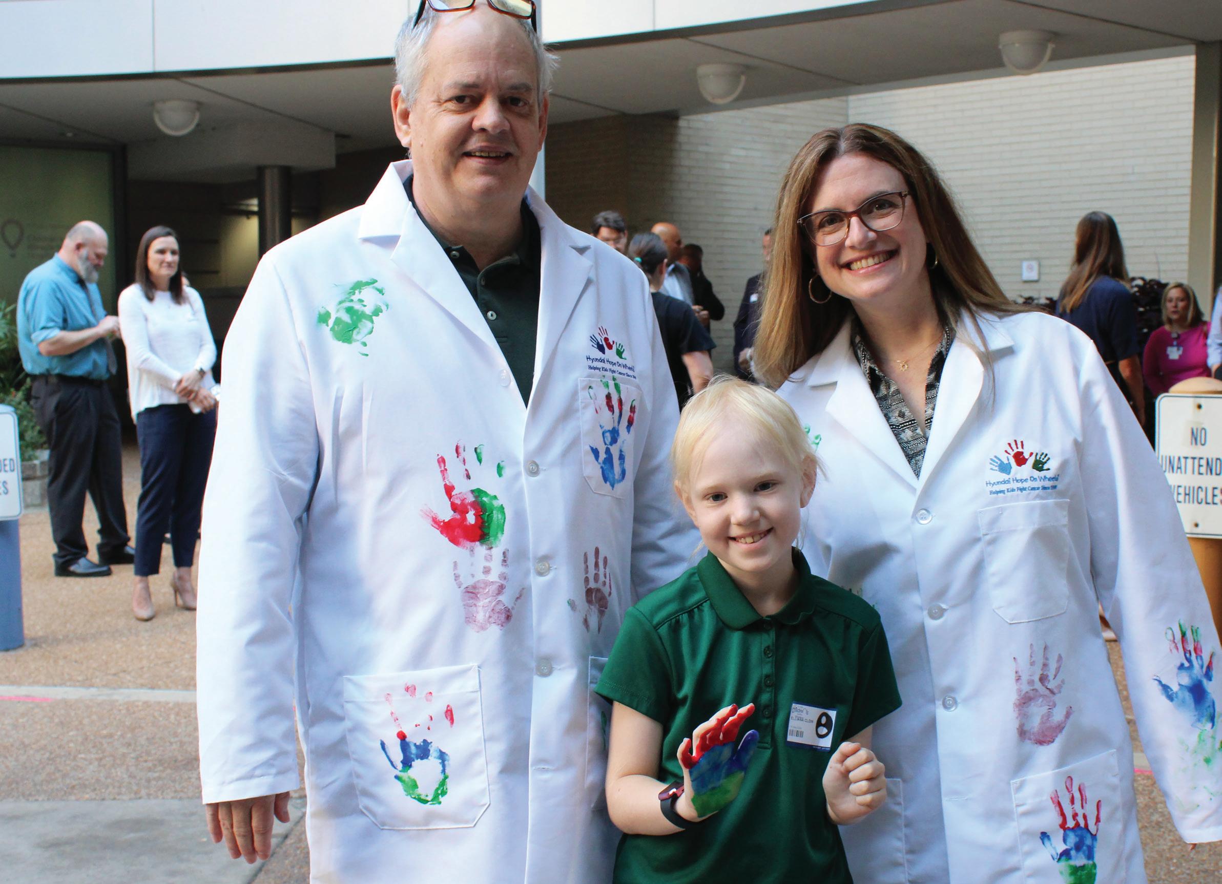 From left to right: Dr. David Wilson, St. Louis Children’s patient Elliana, and Dr. Melissa Mavers at the Hyundai Hope on Wheels Handprint Ceremony.