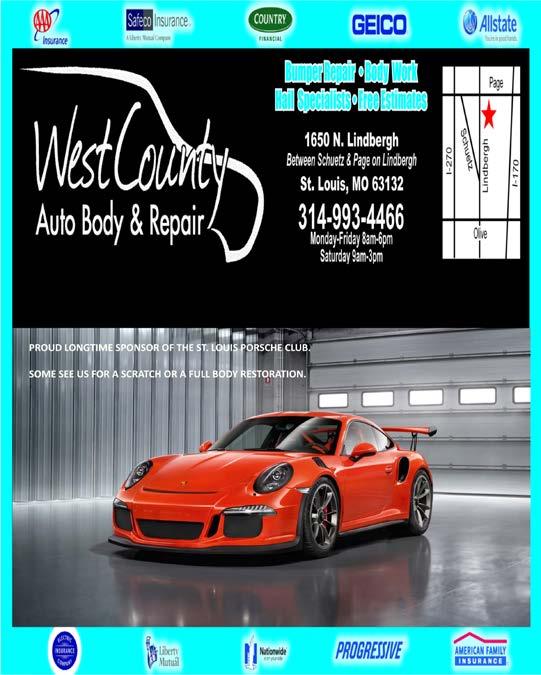 Die Porsche Plauderei is the official publication of St. Louis Region, PORSCHE CLUB OF AMERICA. Opinions expressed herein represent the views of the authors only. Associate Regions, by this statement, are authorized to use materials in this publication provided proper credits are included. Deadline for articles or information for publication is the 15th of the month prior to publication. Submissions may be edited for grammar and length. Editor reserves the right to edit all material and to publish only material that is felt to be in the best interest of the Region. Forward inquiries and materials for publication to ESSINC Group, Box 510109, St. Louis, MO, 63151-0109 e-mail: plauderei@stl.pca.org Send changes of address to membership@stl.pca.org or by mail to St. Louis Region PCA, Box 510109, St. Louis, MO, 63151-0109.