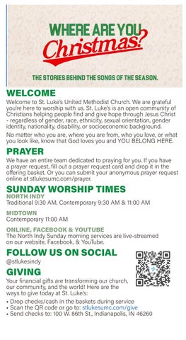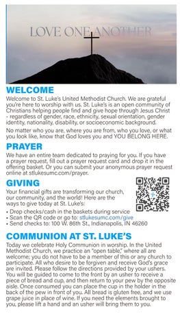 At St. Luke’s United Methodist Church, we are an open community of Christians helping people find and give hope through Jesus Christ - regardless of their gender, race, ethnicity, sexual orientation, nationality, disability or socioeconomic background. We work to ensure that our congregation and its leadership represent the community in which we are located. We are dedicated to including women, people of color, and LGBTQ+ as staff and in positions of leadership and decision making.