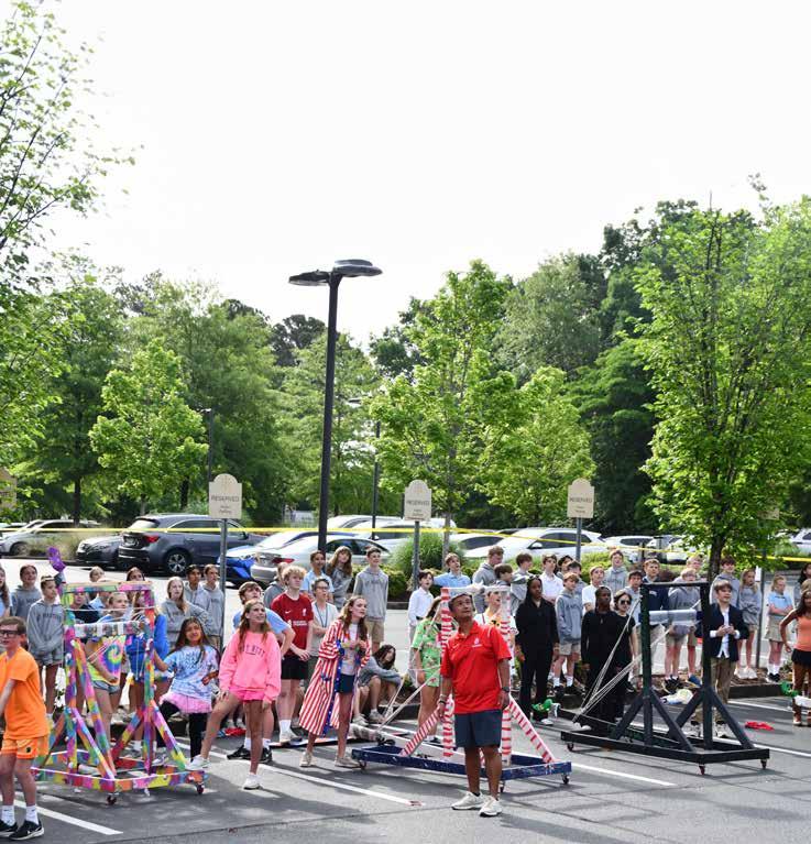 Eighth-graders showcased their capstone project with a successful catapult launch. The multi-disciplinary project brought together creativity and teamwork for 8th-grade groups to design and build a working catapult and find ways to market it, including themed paint and choreographed dances. Parents, faculty and fellow students enjoyed the festivities! Congratulations to Team Batman for winning the Most Valuable Catapult with the highest launch score, Team Matrix for Best Dance, Team Minions for Best Decorated and Team USA for the most points!