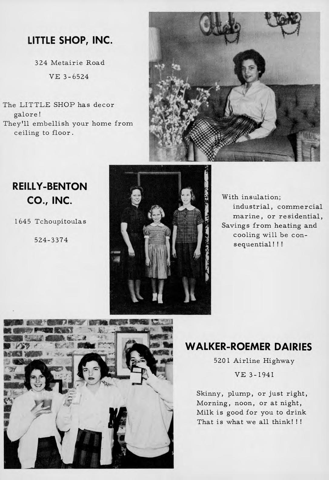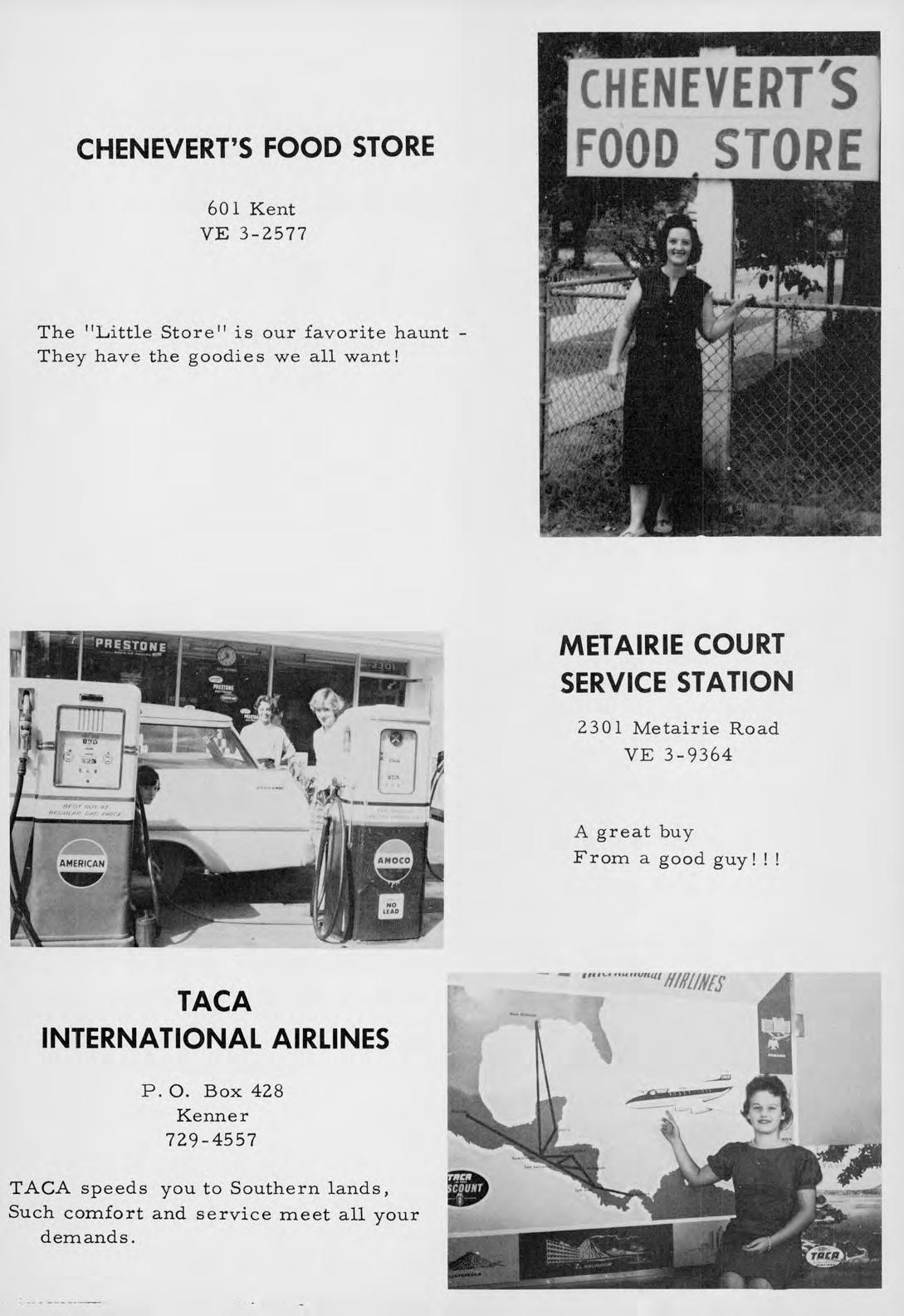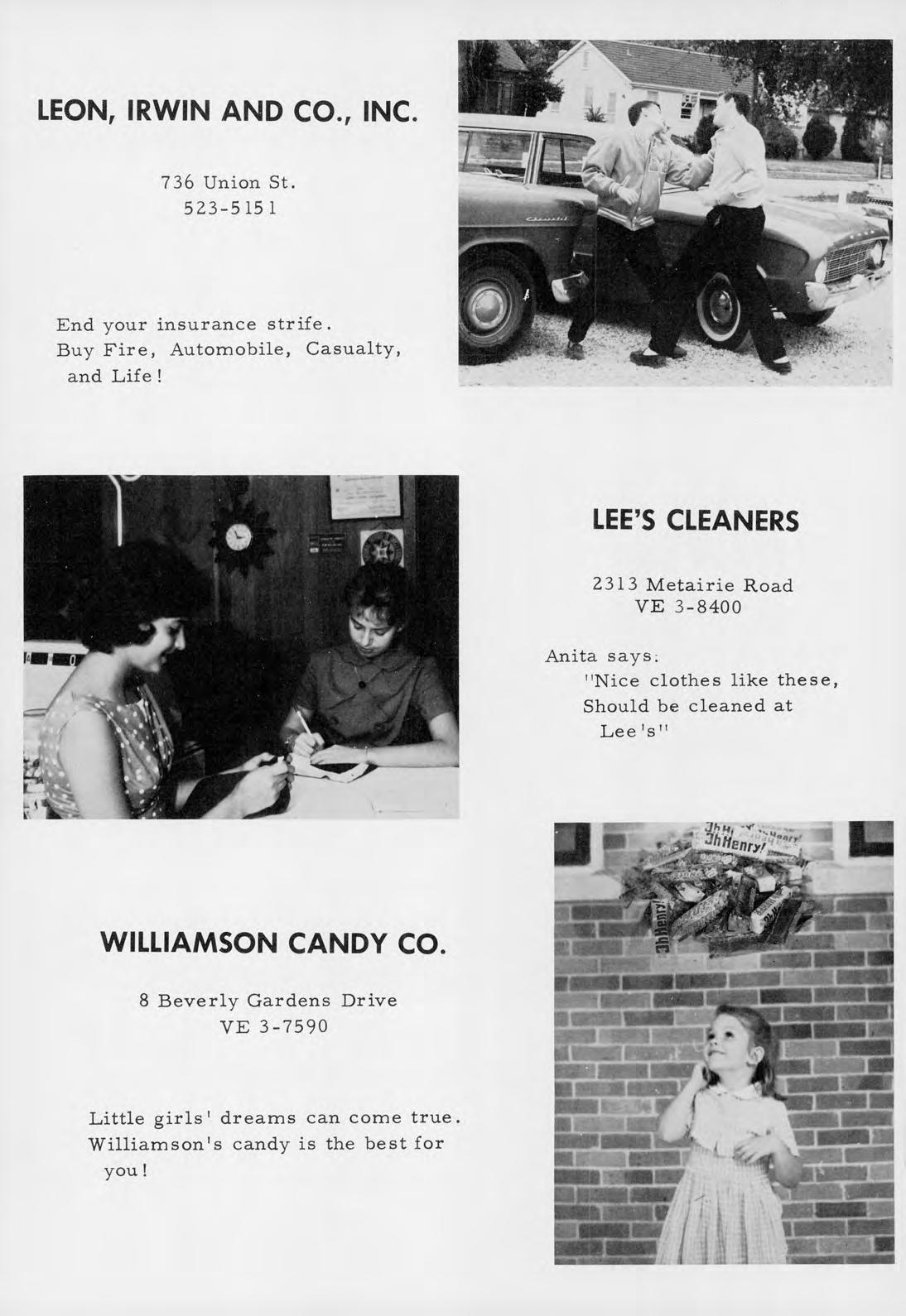 631 Elysian Fields CRESCENT WELDING SUPPLY 21 5th Street, Gretna, La. WH 9-4453 4400 Camel, Metairie, La. On Cresc ent Supply You can rely! 700 Margaret St., Houma, La. ,....,..l'j.WjTr WHITE SYSTEM OF NEW ORLEANS, INC. 343 Carondelet St. JA 2-8201 Get money from WHITE! Set your budget right! ! SCHOOL PRODUCTS COMPANY 2920 Chartres St. WH 4-2468 The desks we get need little repair-They'll take a lot of wear and tear! !