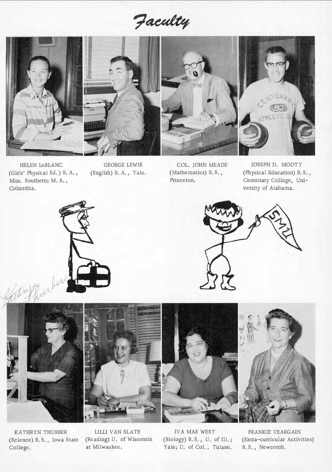 MARY A. BEASLEY MITCHELL N. BERARD (English and Social Studies) (French and Spanish) B. A. , B A. , S. M. U.; M.A., U. S. L. I., Tulane ; C. D. F., of Texas. U. of Bordeaux, France.
