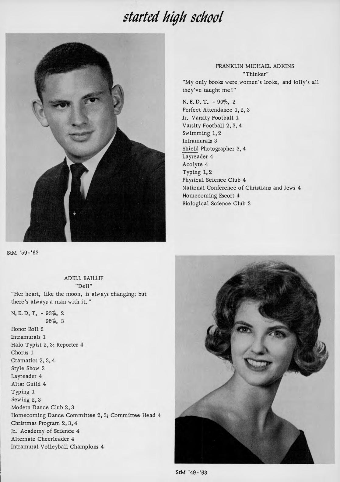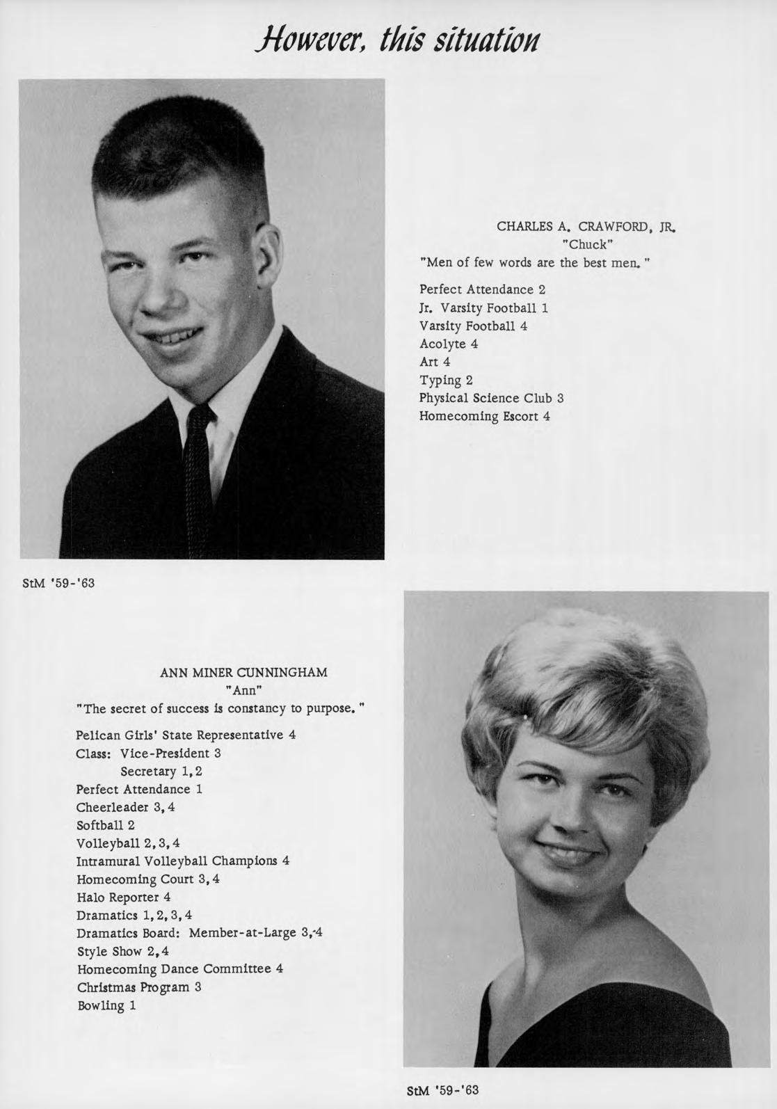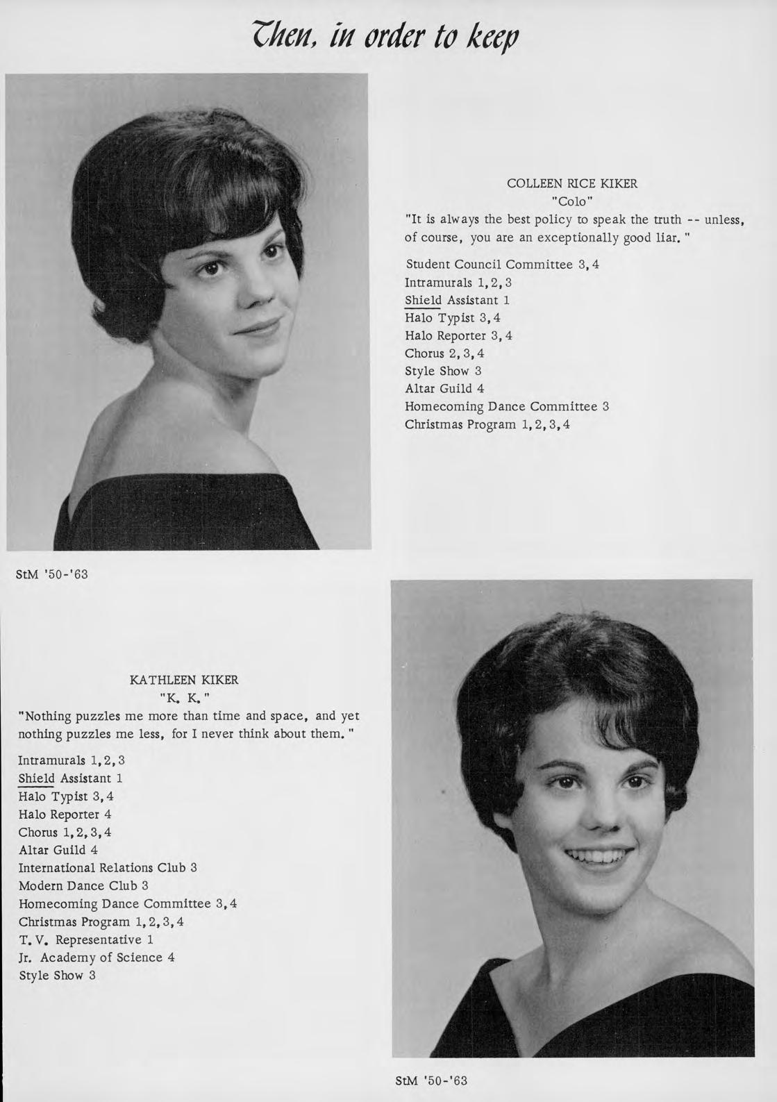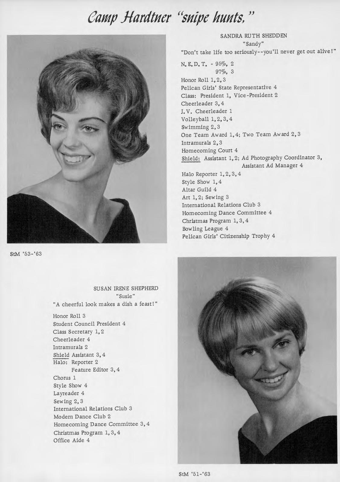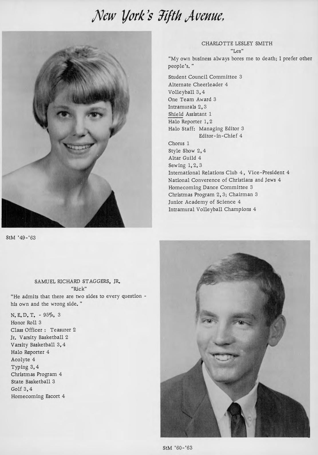 In order to help its students form well-rounded personalities, St. Martin's combines a knowledge of our cultural heritage with the enjoyment of day-to-day experiences. Recognizing these two aspects, the Shield staff endeavors to present both the serious and the light-hearted sides of life in the theme of this yearbook. The statues, representing our cultural heritage, present a contrast to the cartoon figures, which depict the humor and fun of school life. It is hoped that when you leave St. Martin's, you will always remember the advantages of such a well-rounded curriculum; and we hope that the 1963 Shield will help you cherish these memories.