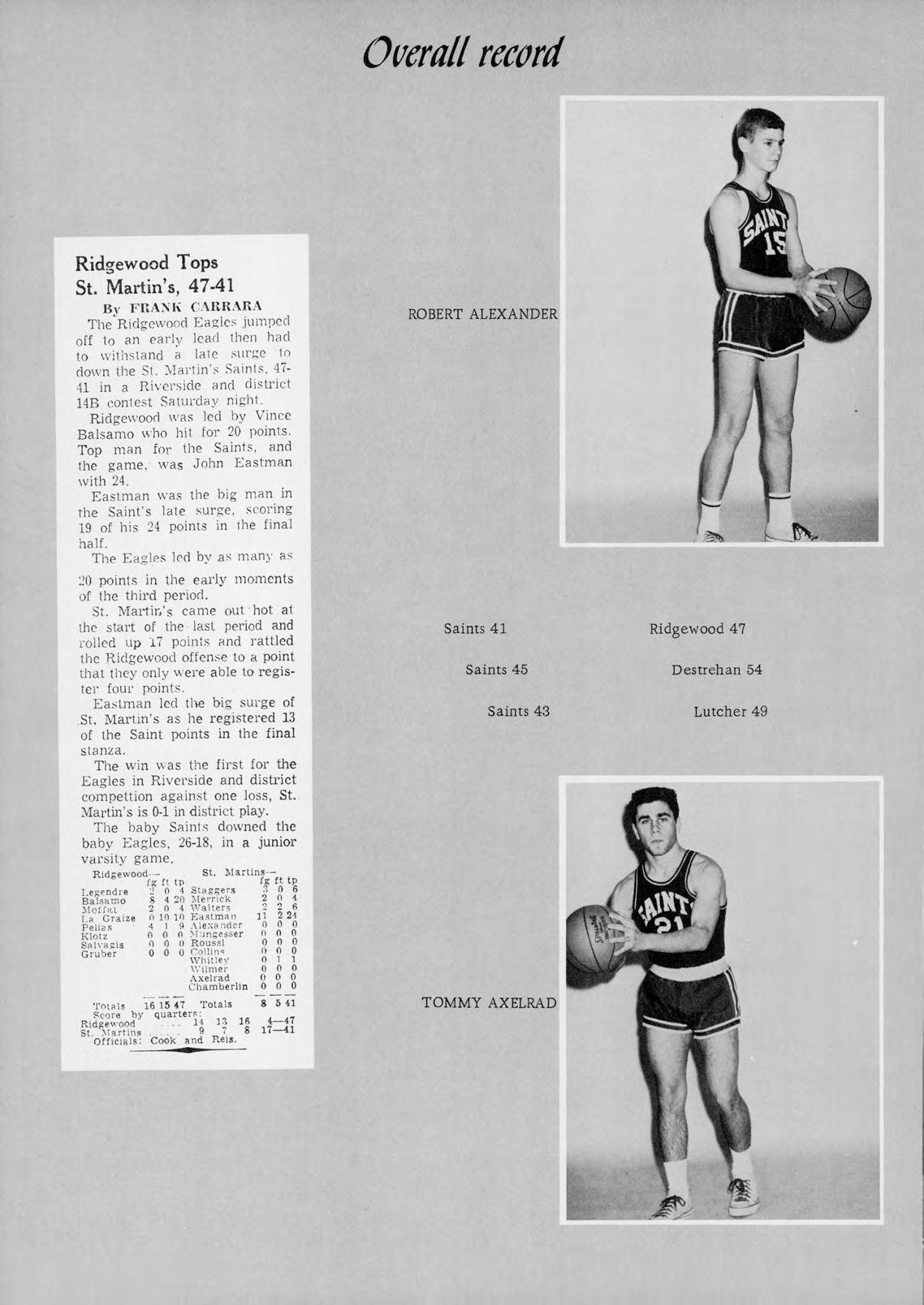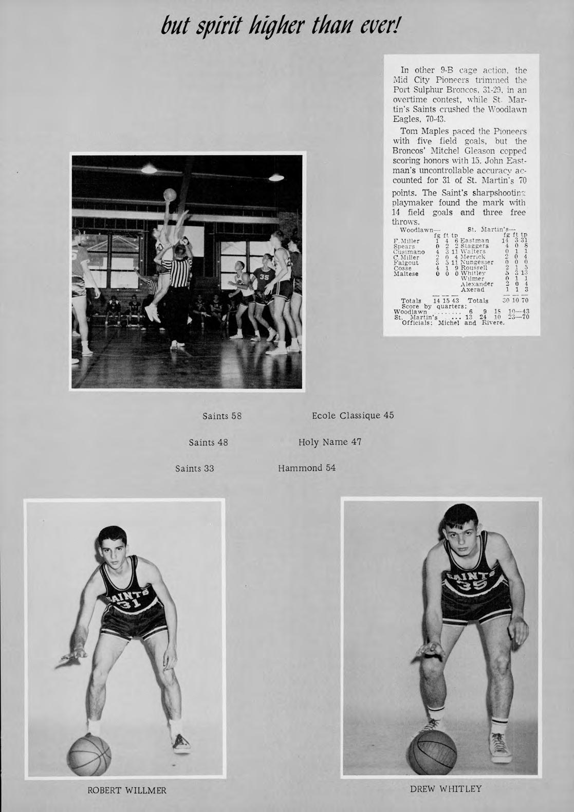 ITwo more records fell in B.C St. Martin's won both the all- as Vaughn of St. Martin's went class and the B-C bracket with over the low hurdles in :15.4, 52, and 69 points respectively, and Mid-City's mile relay team and St. Bernard captured the chalk~d up a 3 :39.5 , AA-A bracket with 82