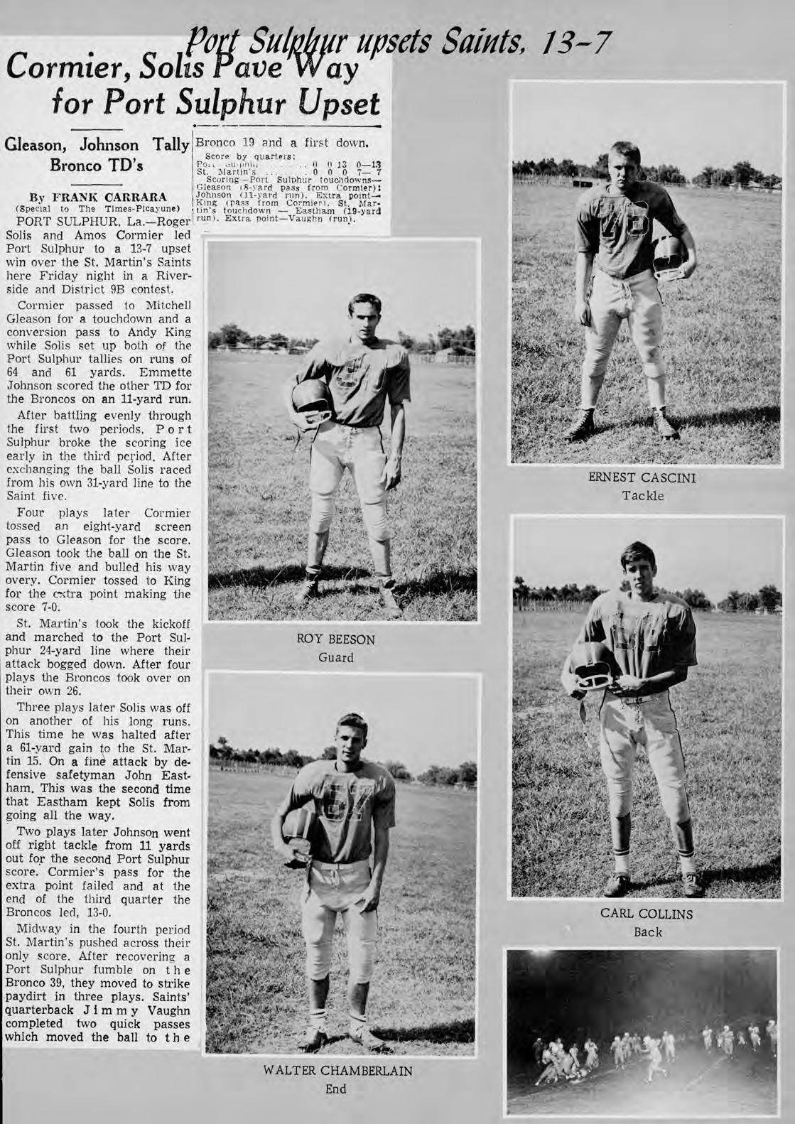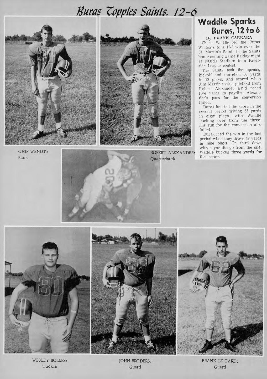 Jerry Waddle of Buras stole , the spotlight as he broke three : records in the AA-A Class an~ one in the all-class bracket. Waddle threw the shot pu 53 '4"; the discus 138'7 ½ ", and the javelin 164'8", in the AA-A, and took the shot in the all1 class.