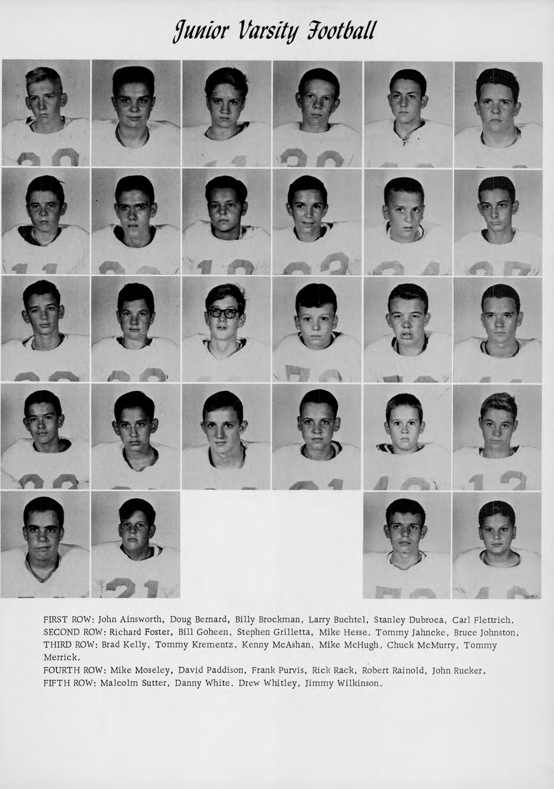 BACK ROW: Bruce Willmer, Manager; Bryan Hetherwick, Charles Grubb, John Eastman, Jim Martin, Jeff Morgan, Tommy Axelrad, Jimmy Vaughn. MIDDLE ROW: Milton Pounds, Chip Wendt, Bobby Willmer, Jeff Graf, Skip Weber. FRONT ROW: Walter Chamberlain, Jesse Morgan, Roy Beeson, Scoopy Schupp, Doug Fyfe.