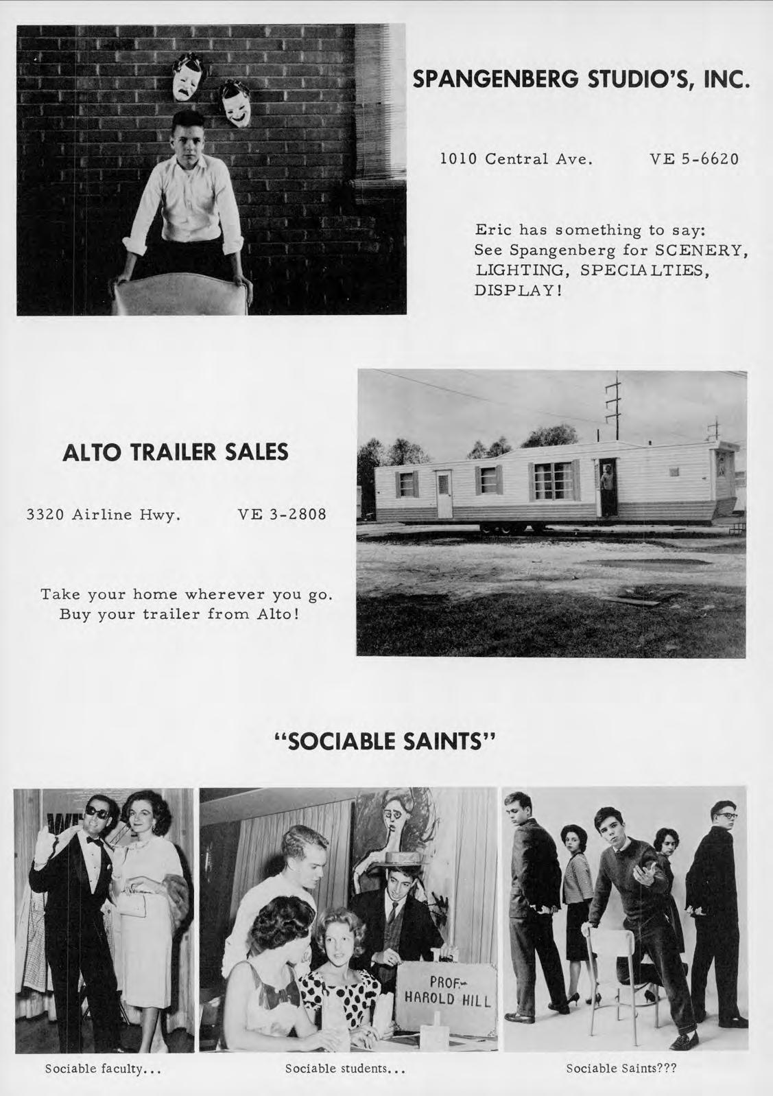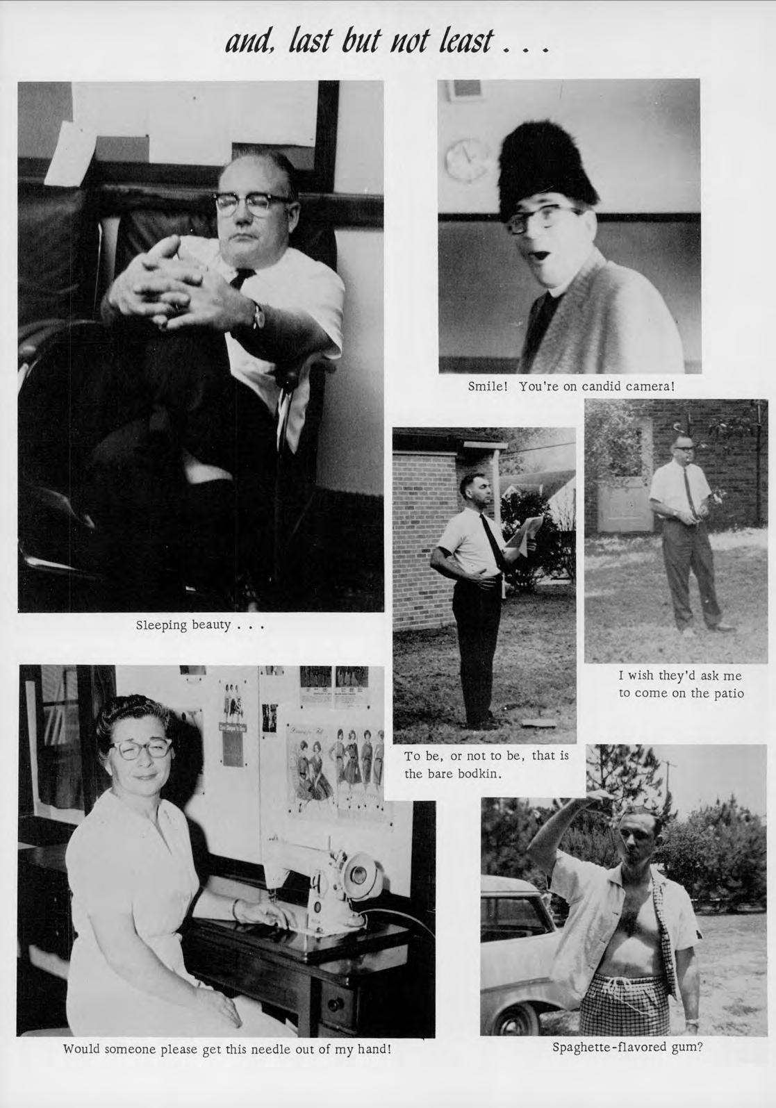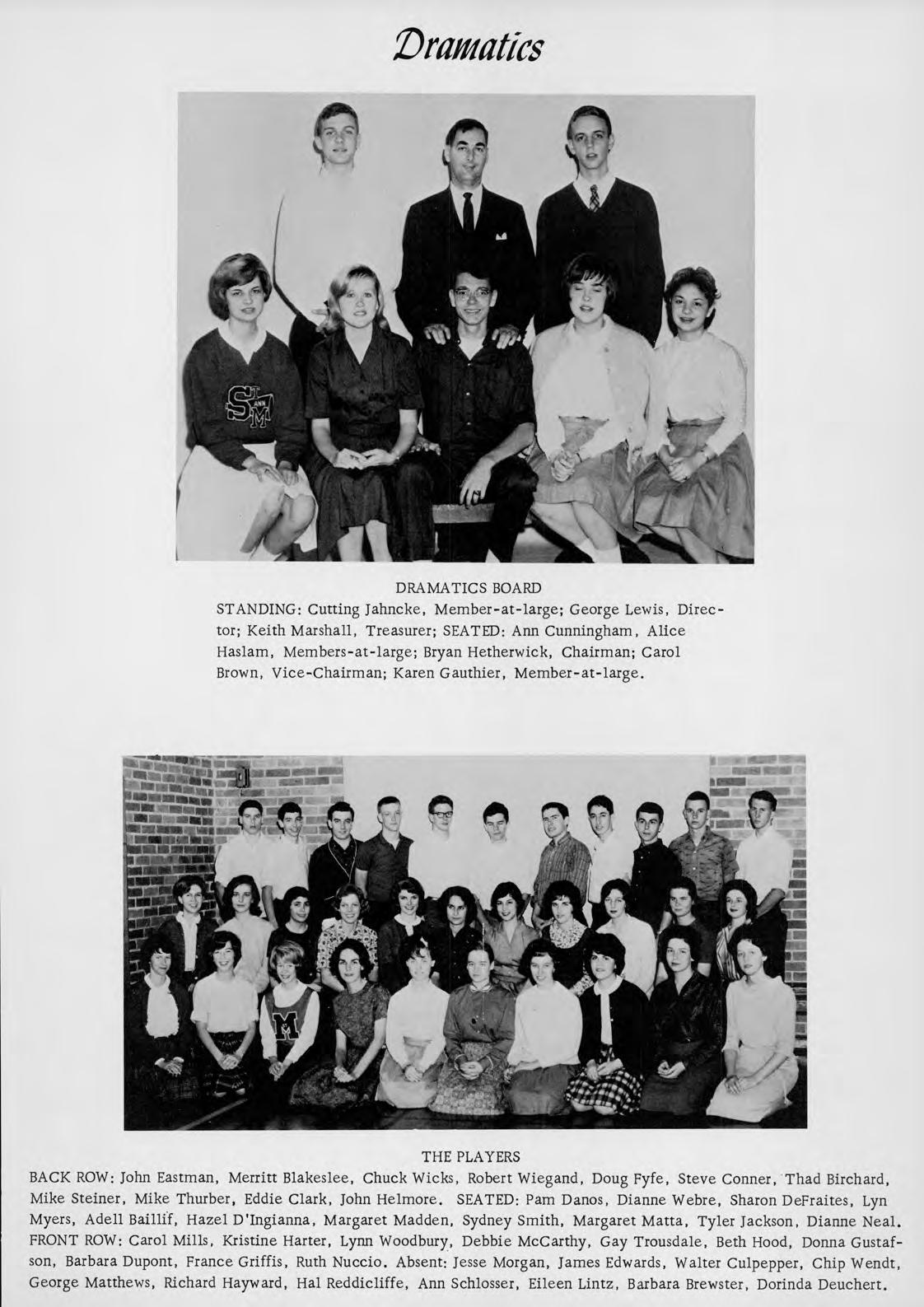 Dramatic s - "Tonight We Present" McHugh, Patty Habeeb, Juanea Jones, Kristine Gauthier, Pam Danos, Mary Holzer, Joan Kreeger, Squad Leader. Bryan Hetherwick brilliantly portrays the Doctor, and he is assisted by (standing) Lyn Myers, Keith Marshall, and Walter Culpepper. The Players rehearse a scene from Twelfth Night.Best All Around Athlete