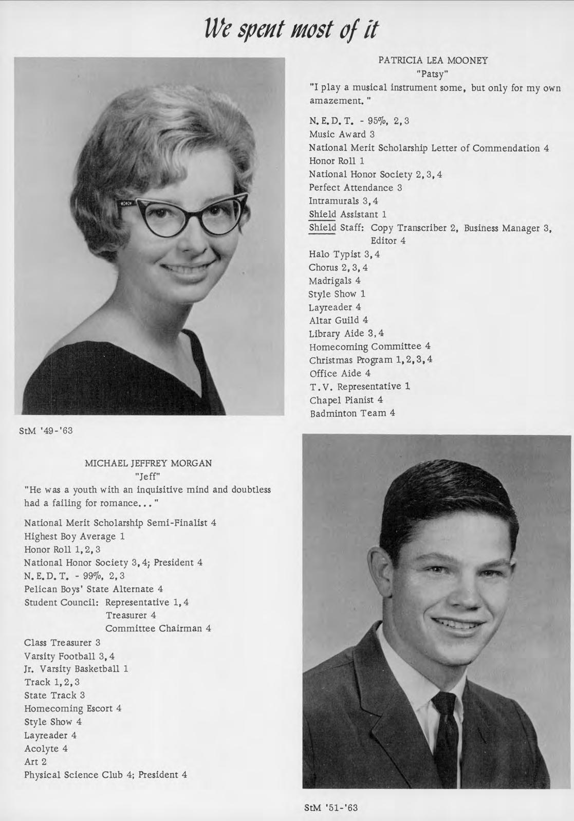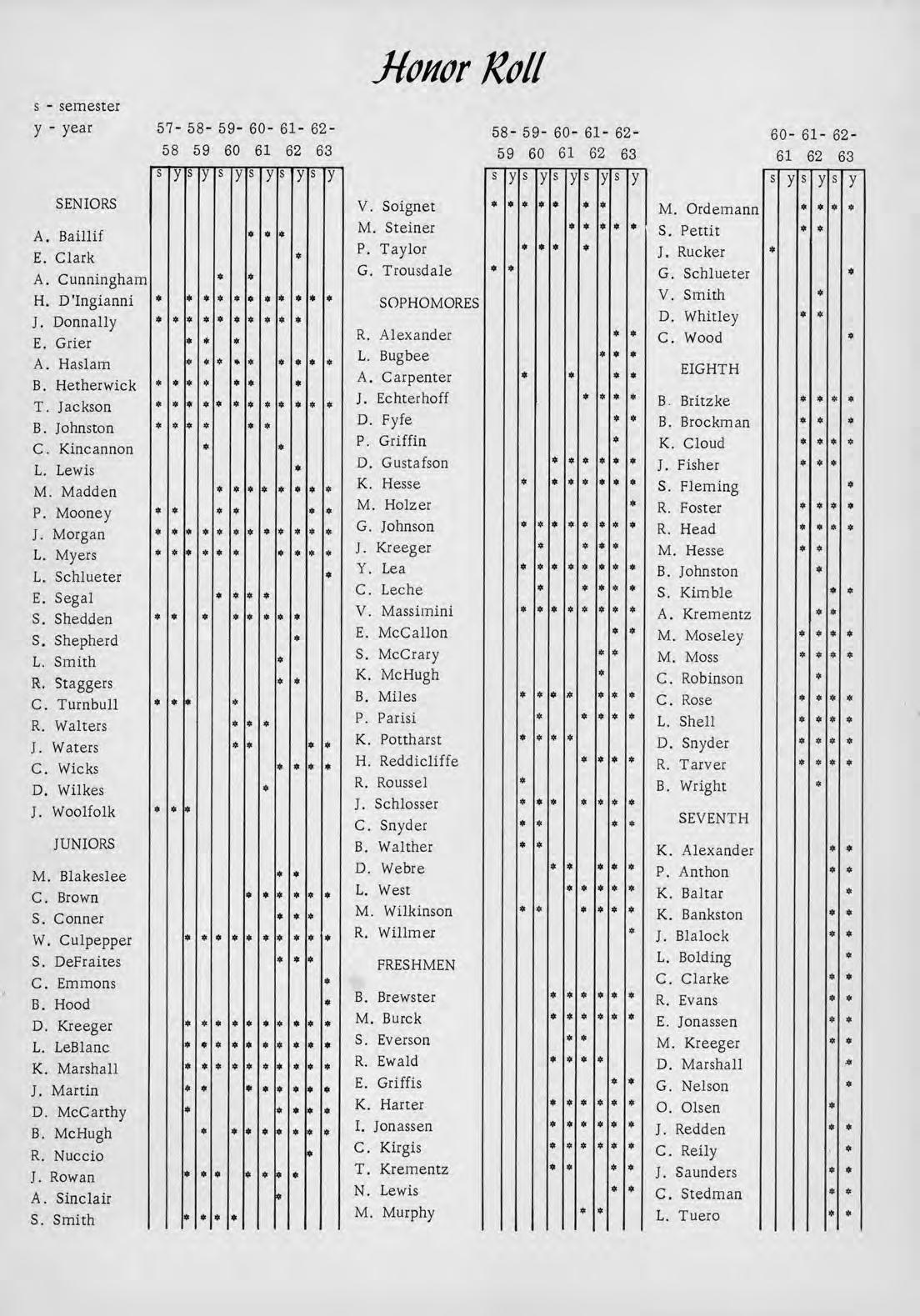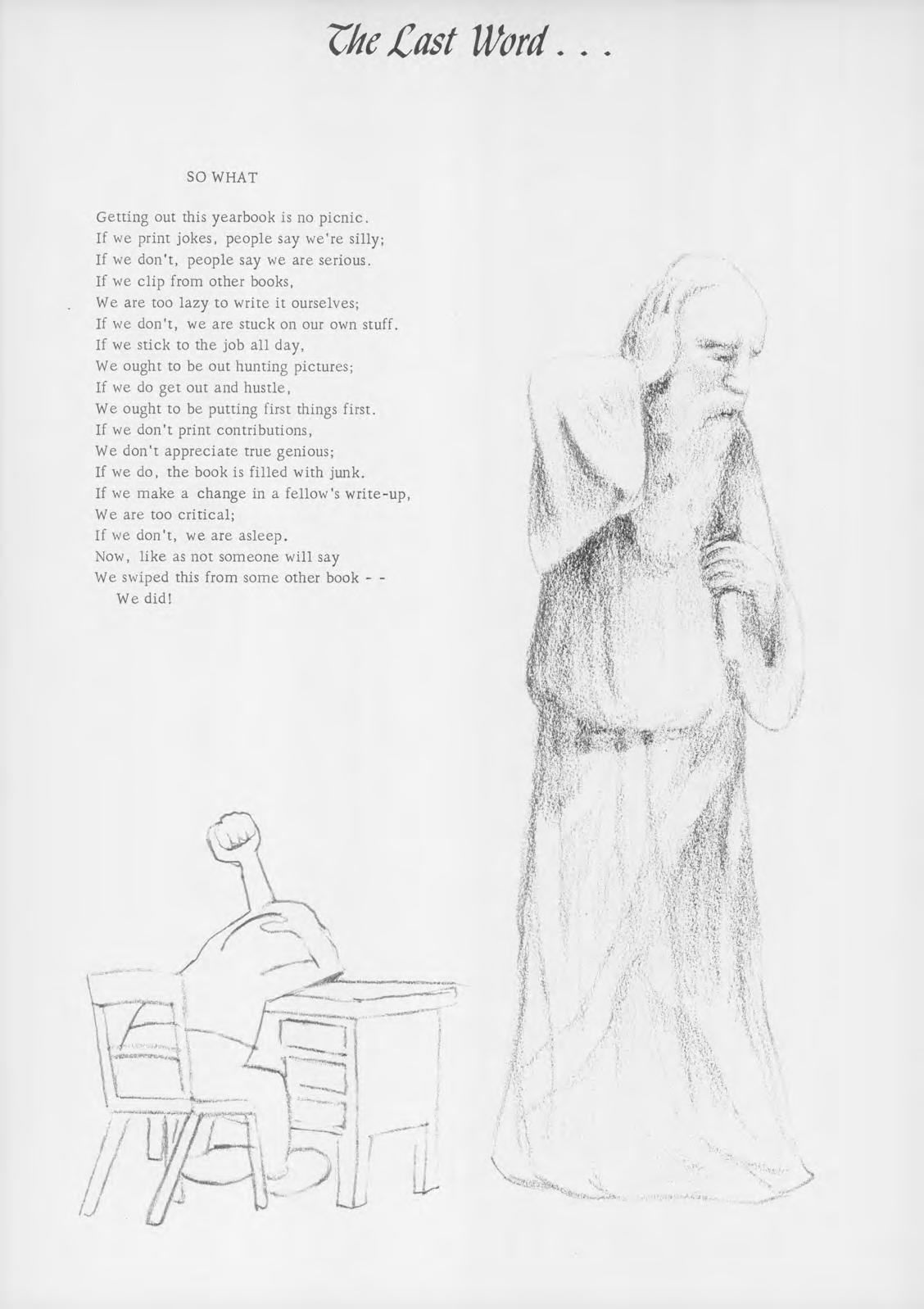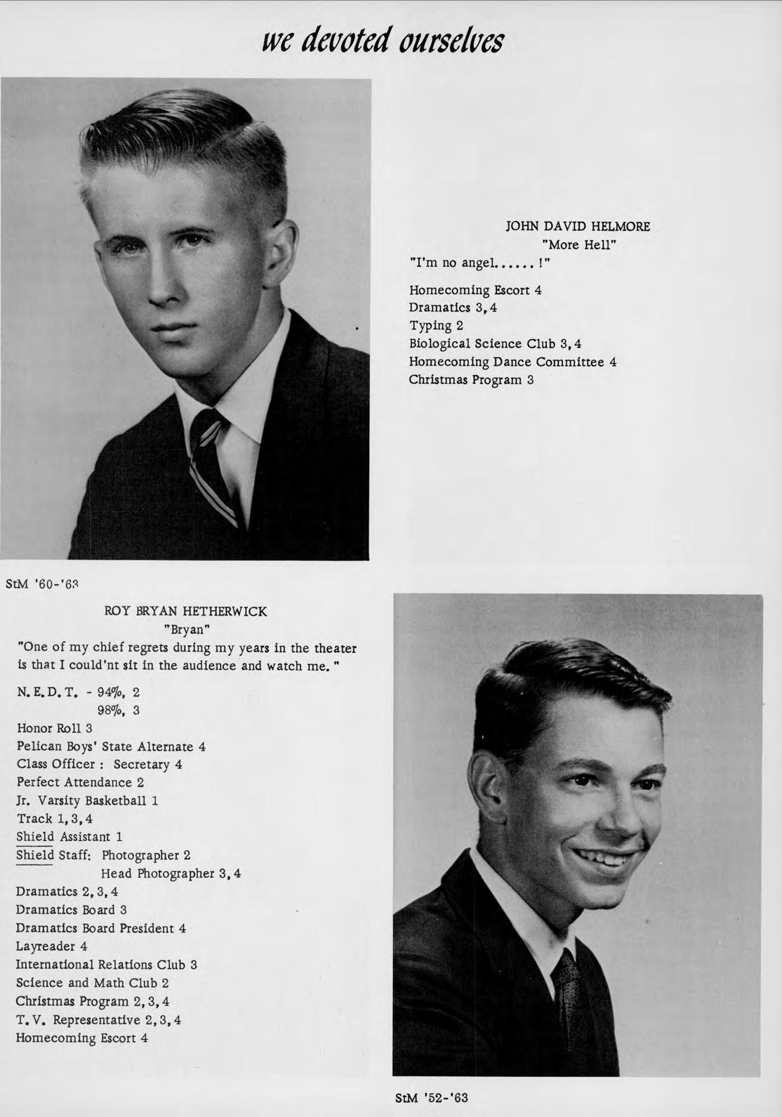 Dramatic s - "Tonight We Present" McHugh, Patty Habeeb, Juanea Jones, Kristine Gauthier, Pam Danos, Mary Holzer, Joan Kreeger, Squad Leader. Bryan Hetherwick brilliantly portrays the Doctor, and he is assisted by (standing) Lyn Myers, Keith Marshall, and Walter Culpepper. The Players rehearse a scene from Twelfth Night.Best All Around Athlete