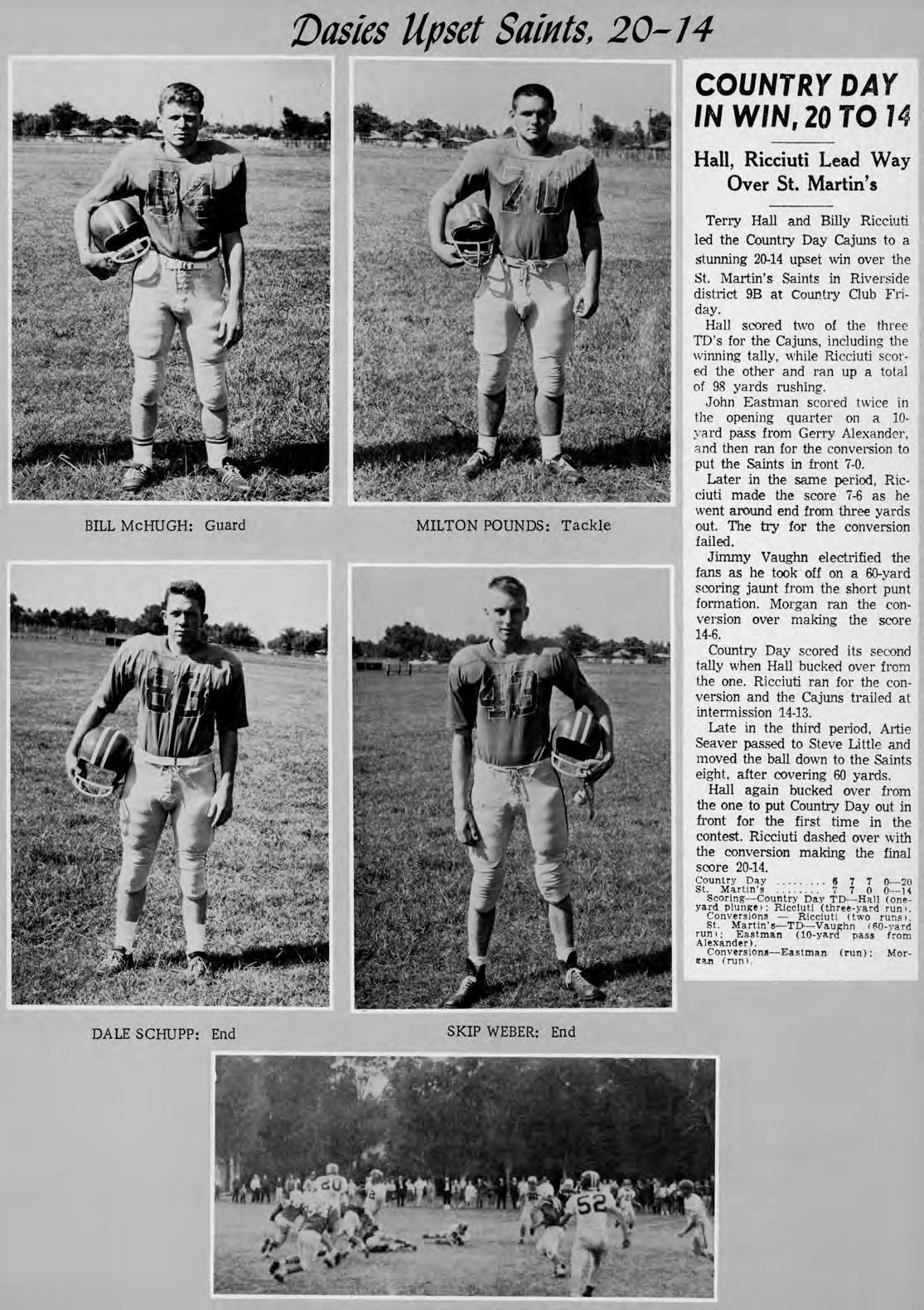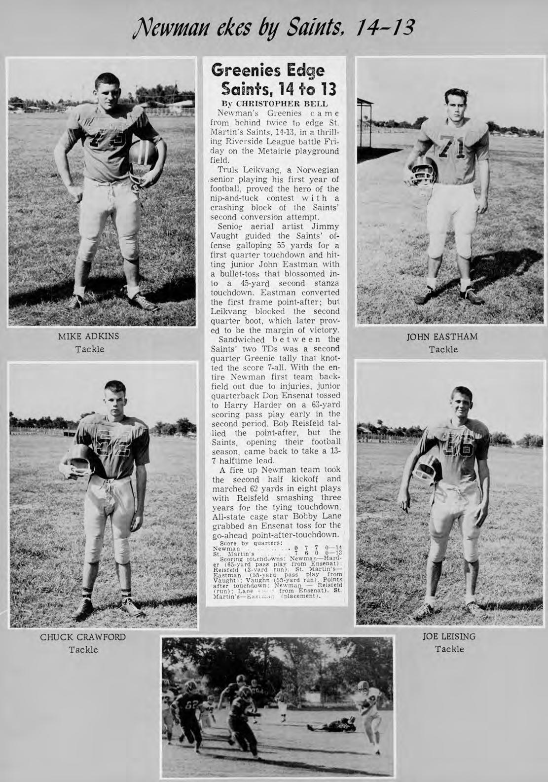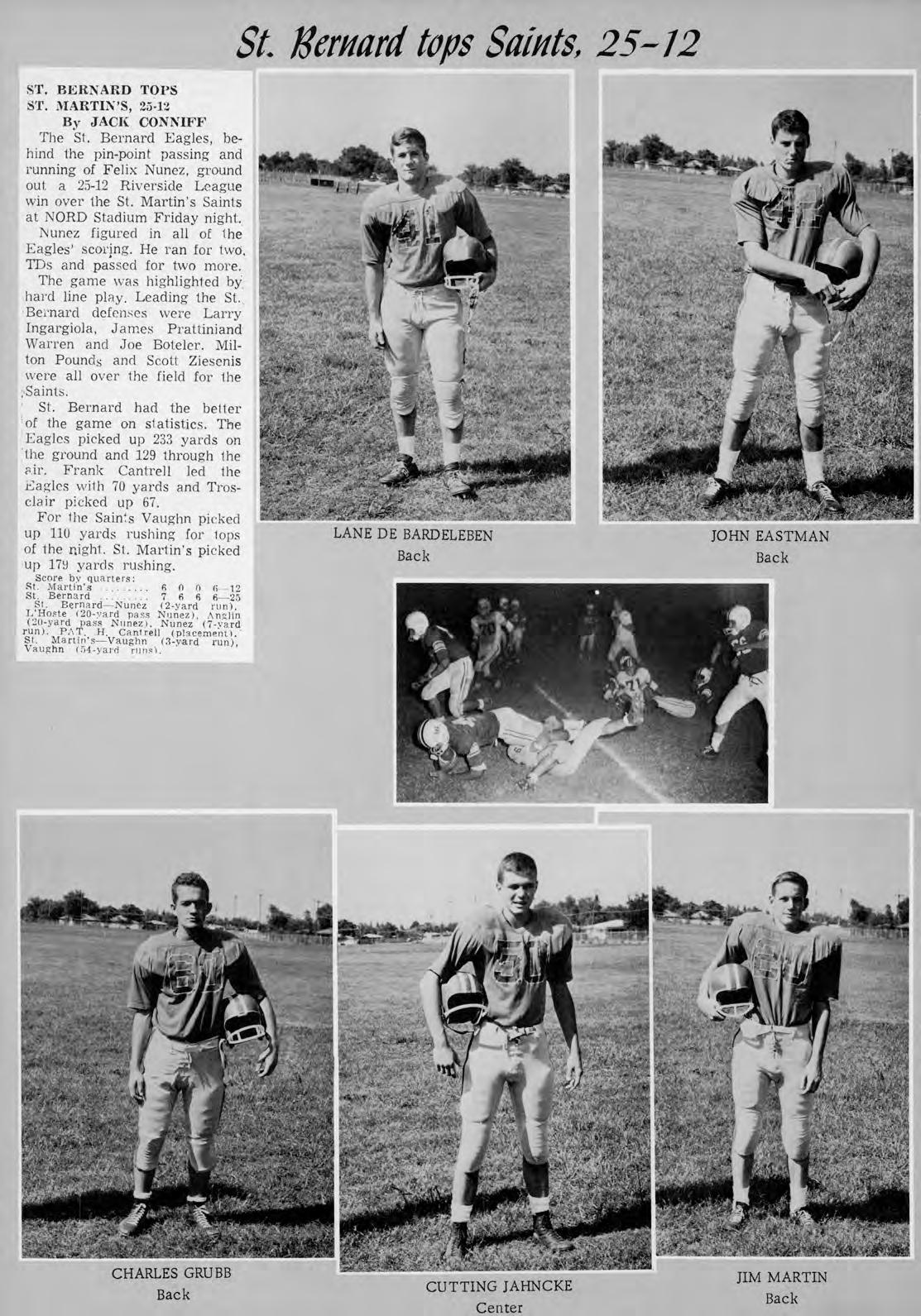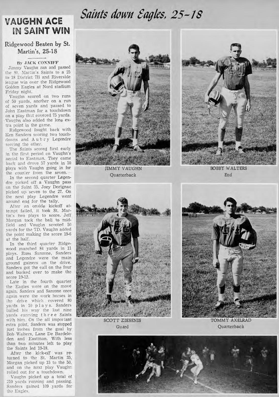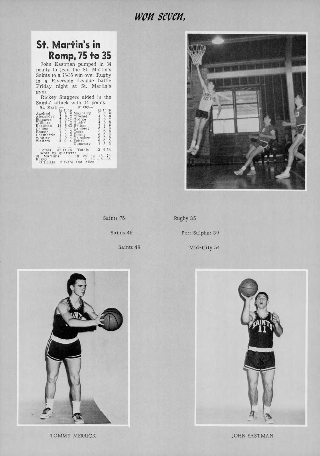 Despite a crushing blow in the teams. Eastman took the ,low mile rela event the St. Martin's h~rdles in 20.8; the hop-step in Y 40 7¼"; and ran the second leg Samts scored a convmcmg wm on the 440- and 880-yard relay in the newly formed distri ct squads.