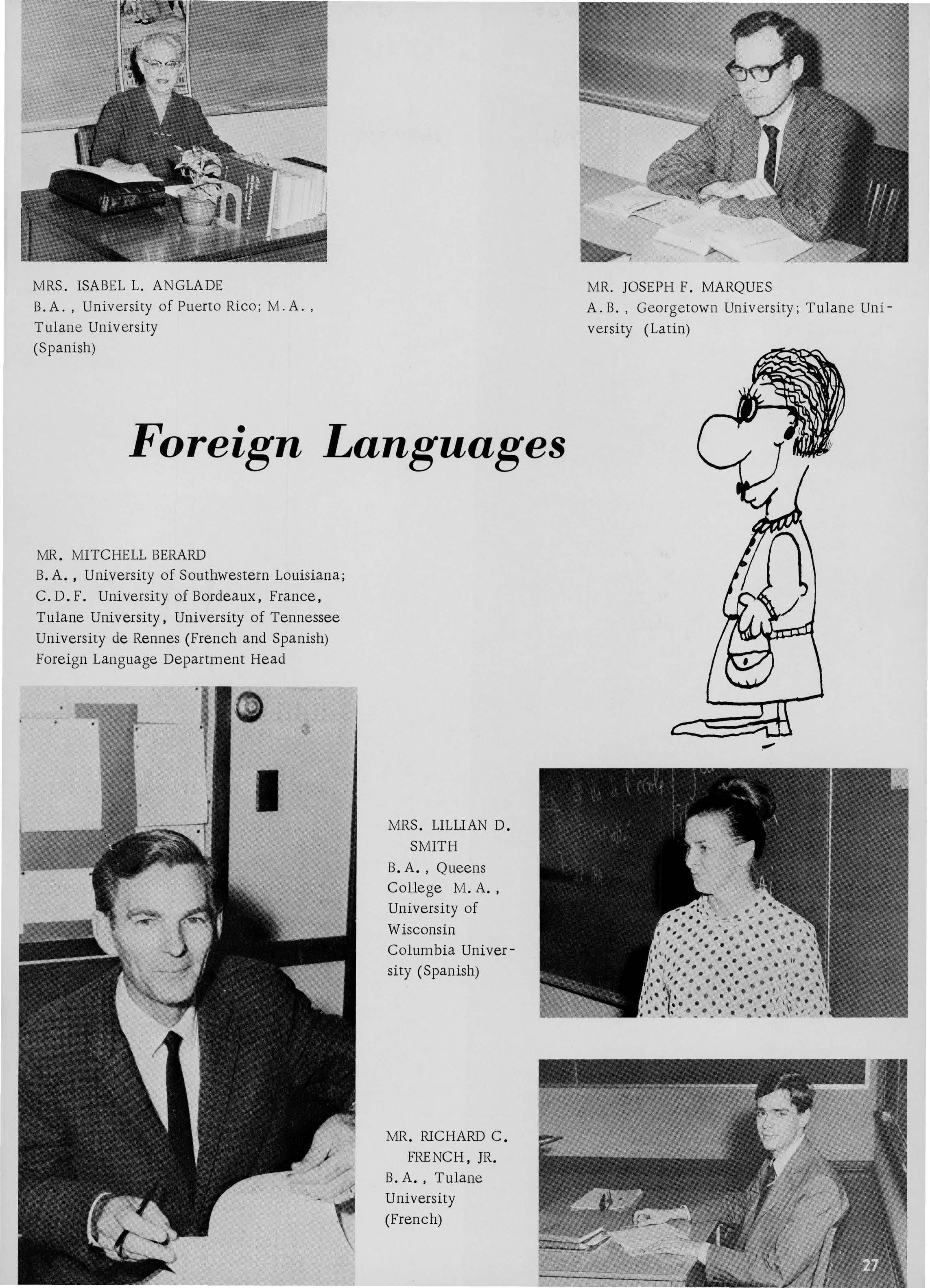 B. A. , University of Southwestern Louisiana; C.D.F. University of Bordeaux, France , Tulane University , University of Tennessee University de Rennes (French and Spanish) Foreign Language Department Head
