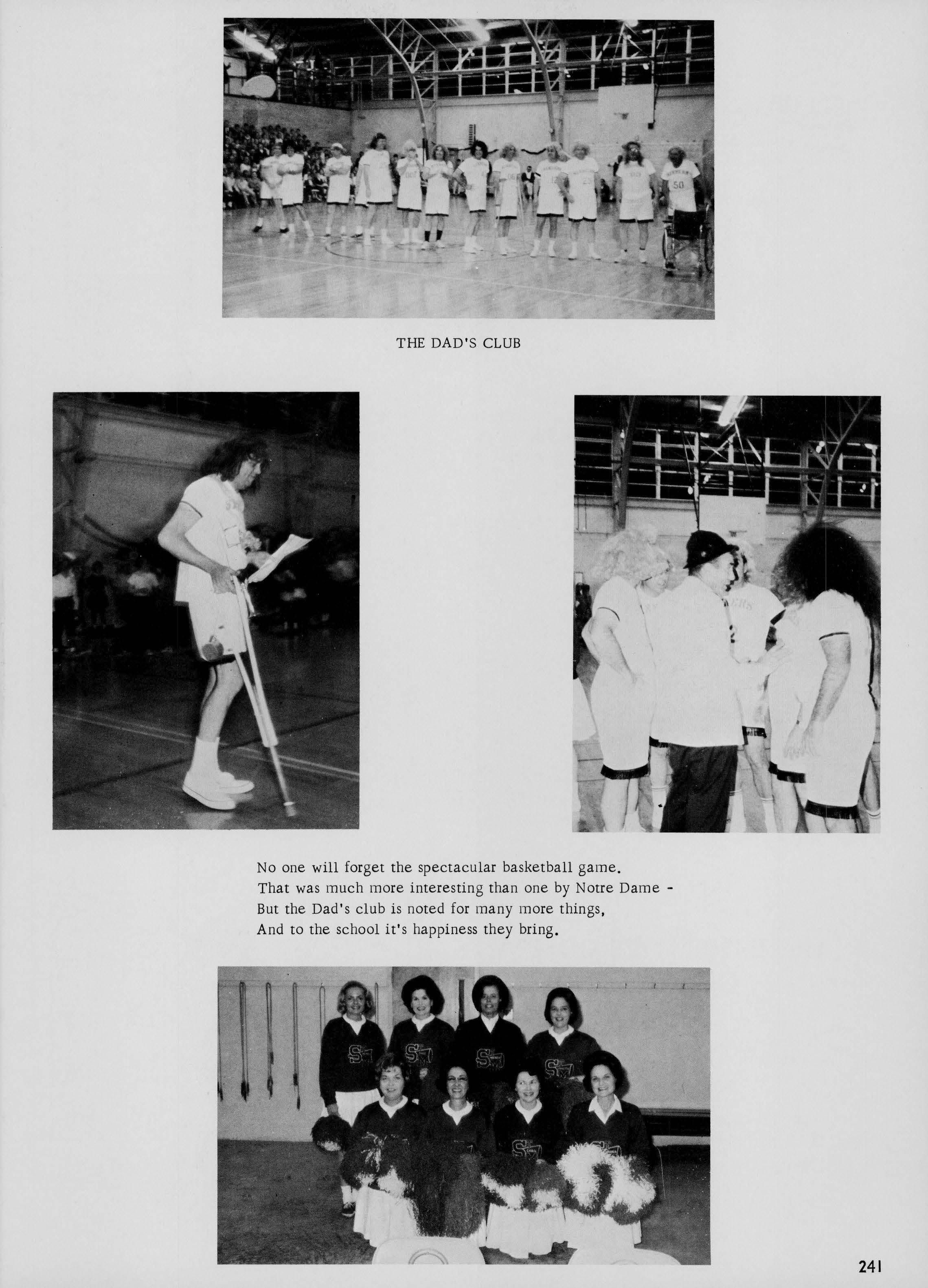 No one will forget the spectacular basketball game. That was much more interesting than one by Notre DameBut the Dad's club is noted for many more things, And to the school it's happiness they bring.