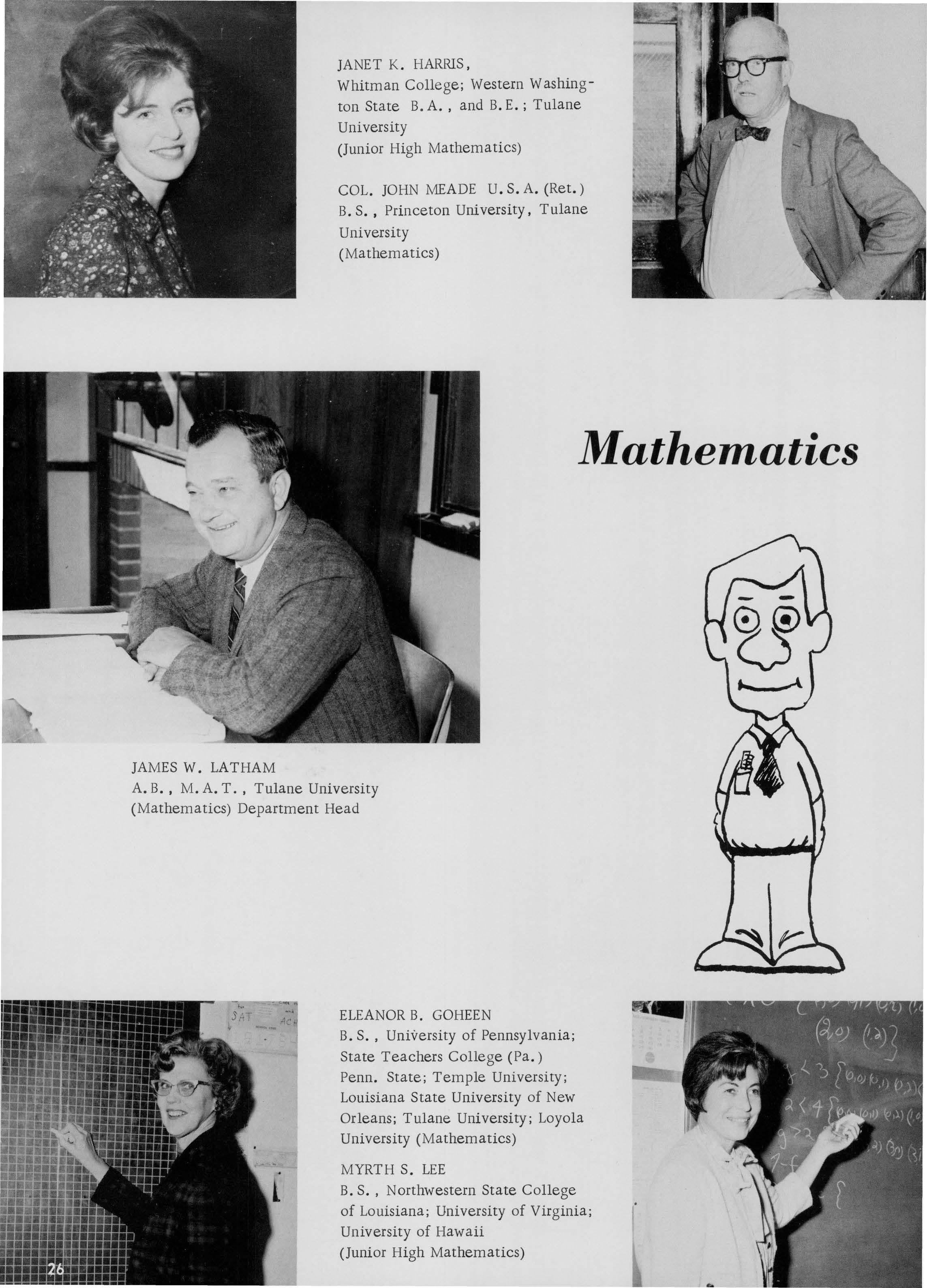 JAMES W. LATHAM A. B. , M.A. T. , Tulane University (Mathematics) Department HeadB A. , University of Puerto Rico; M A. , Tulane University (Spanish)